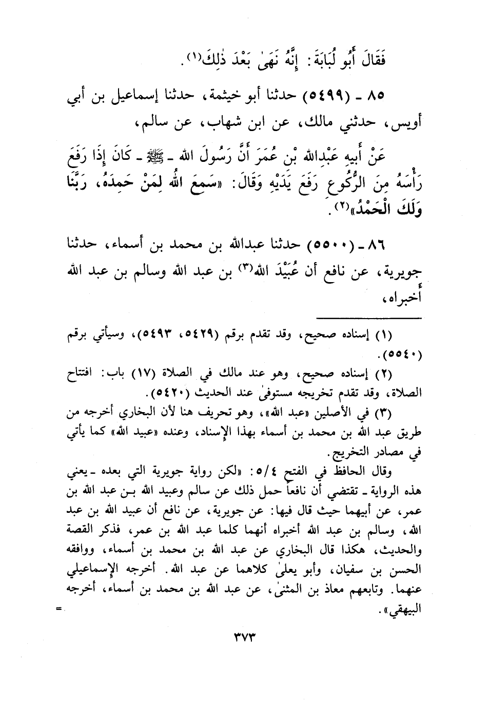 5499 - حَدَّثَنَا أَبُو خَيْثَمَةَ، حَدَّثَنَا إِسْمَاعِيلُ بْنُ أَبِي أُوَيْسٍ، حَدَّثَنِي مَالِكٌ، عَنِ ابْنِ شِهَابٍ، عَنْ سَالِمٍ، عَنْ أَبِيهِ عَبْدِ اللَّهِ بْنِ عُمَرَ، أَنَّ رَسُولَ اللَّهِ صَلَّى اللهُ عَلَيْهِ وَسَلَّمَ كَانَ إِذَا رَفَعَ رَأْسَهُ مِنَ الرُّكُوعِ رَفَعَ يَدَيْهِ وَقَالَ: «§سَمِعَ اللَّهُ لِمَنْ حَمِدَهُ، رَبَّنَا وَلَكَ الْحَمْدُ» Kإسناده صحيح