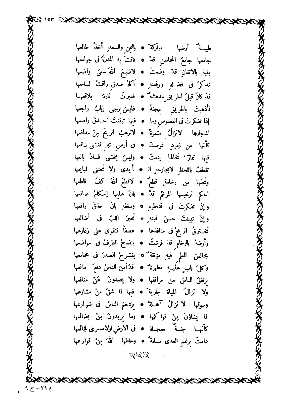 طَيِّبَةٌ أَرْضُهَا مُبَارَكَةٌ ... بِالْيُمْنِ وَالسَّعْدِ أَخْذُ طَالِعِهَا