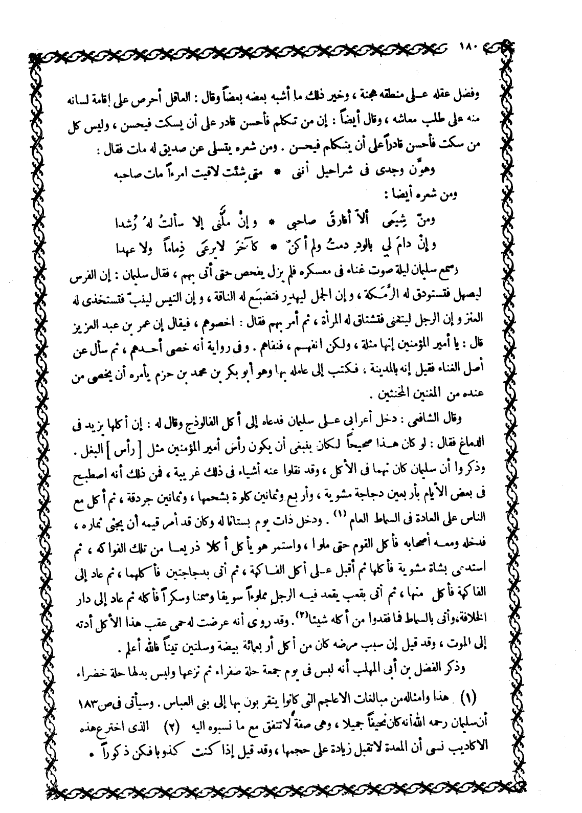 [1] هذا وأمثاله من مبالغات الأعاجم التي كانوا يتقربون بها إلى بنى العباس. وسيأتي في ص 183 أن سليمان رحمه الله أنه كان نحيفا جميلا، وهي صفة لا تتفق مع ما نسبوه اليه
