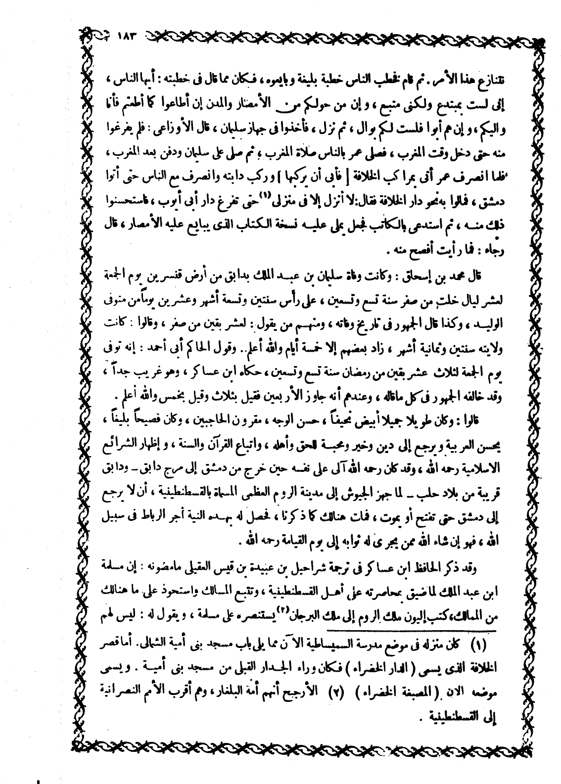 وَقَدْ ذَكَرَ الْحَافِظُ ابْنُ عَسَاكِرَ فِي تَرْجَمَةِ شَرَاحِيلَ بْنِ عُبَيْدَةَ بْنِ قَيْسٍ الْعُقَيْلِيِّ مَا مضمونه: إن مسلمة ابن عَبْدِ الْمَلِكِ لَمَّا ضَيَّقَ بِمُحَاصَرَتِهِ عَلَى أَهْلِ القسطنطينية، وتتبع المسالك واستحوذ على مَا هُنَالِكَ مِنَ الْمَمَالِكِ، كَتَبَ إِلْيُونُ مَلِكُ الرُّومِ إِلَى مَلِكِ الْبُرْجَانِ [2] يَسْتَنْصِرُهُ عَلَى مَسْلَمَةَ، ويقول له: ليس لهم