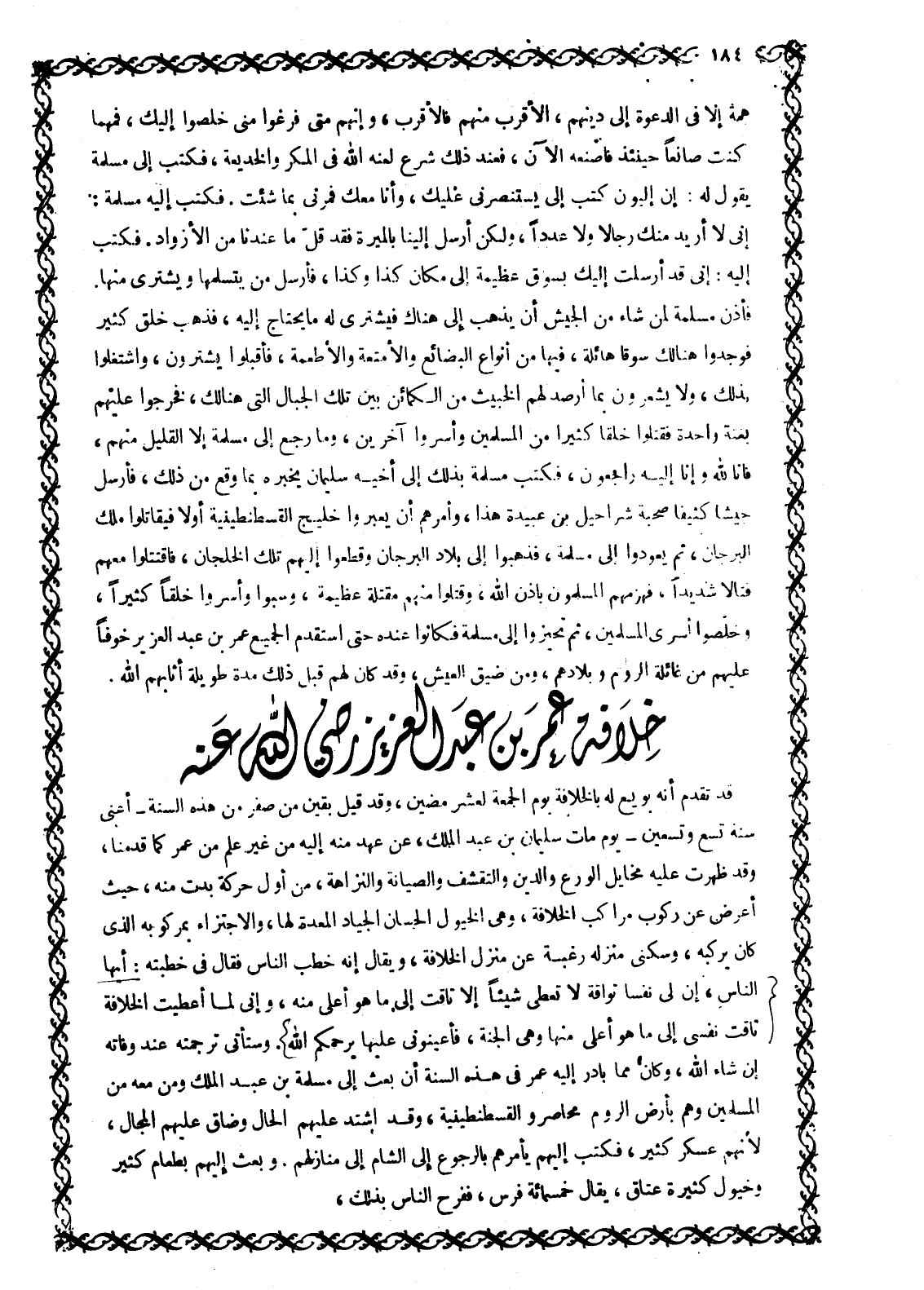 وهذه خلافة عمر بن عبد العزيز أشجّ بنى مروان رضى الله عنه وأكرمه