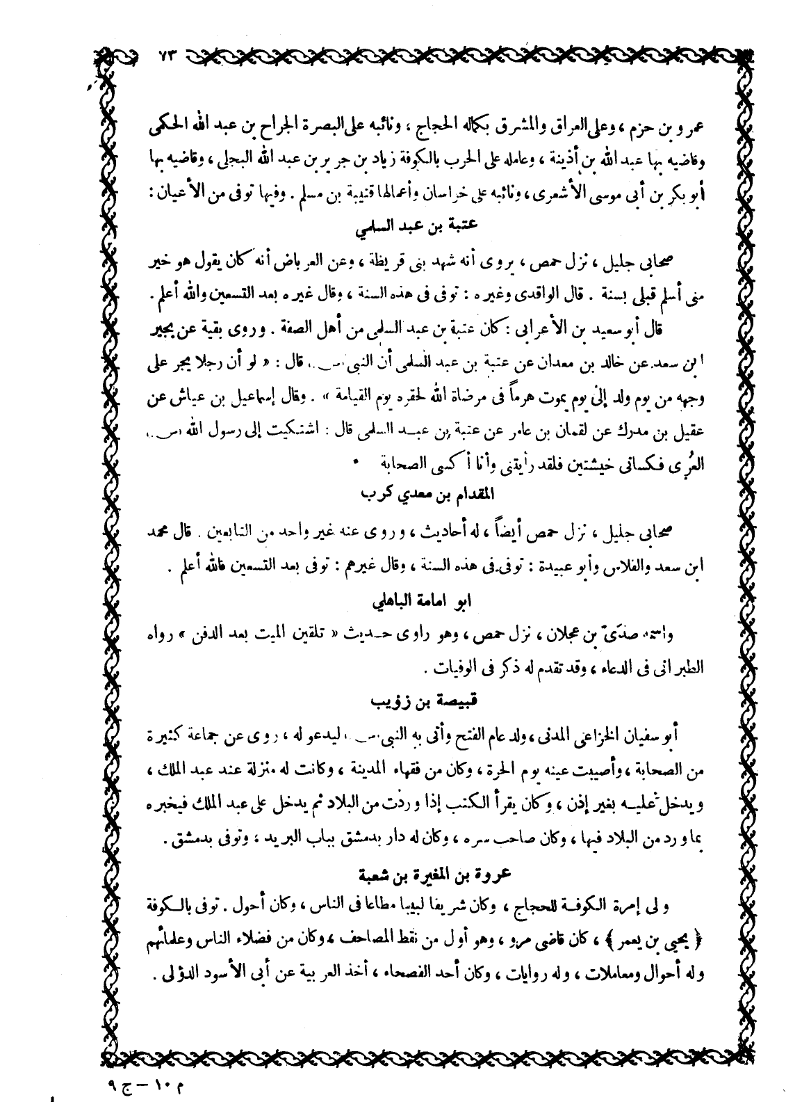 صَحَابِيٌّ جَلِيلٌ، نَزَلَ حِمْصَ أَيْضًا، لَهُ أَحَادِيثُ، وَرَوَى عَنْهُ غَيْرُ وَاحِدٍ مِنَ التَّابِعِينَ. قَالَ محمد ابن سعد والفلاس وأبو عبيدة: تُوُفِّيَ فِي هَذِهِ السَّنَةِ، وَقَالَ غَيْرُهُمْ: تُوُفِّيَ بَعْدَ التِّسْعِينَ فاللَّه أَعْلَمُ.