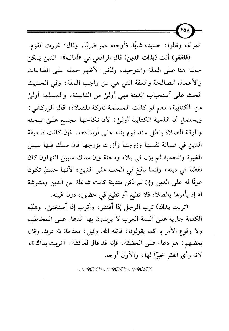 (تربت يداك) ترب الرجل إذا افتقر، وأترب إذا استغنى، وهذِه الكلمة جارية على ألسنة العرب لا يريدون بها الدعاء على المخاطب ولا وقوع الأمر به كما يقولون: قاتله الله. وقيل: معناها: لله درك. وقال بعضهم: هو دعاء على الحقيقة، فإنه قد قال لعائشة: "تربت يداك"، لأنه رأى الفقر خيرًا لها، والأول أوجه.