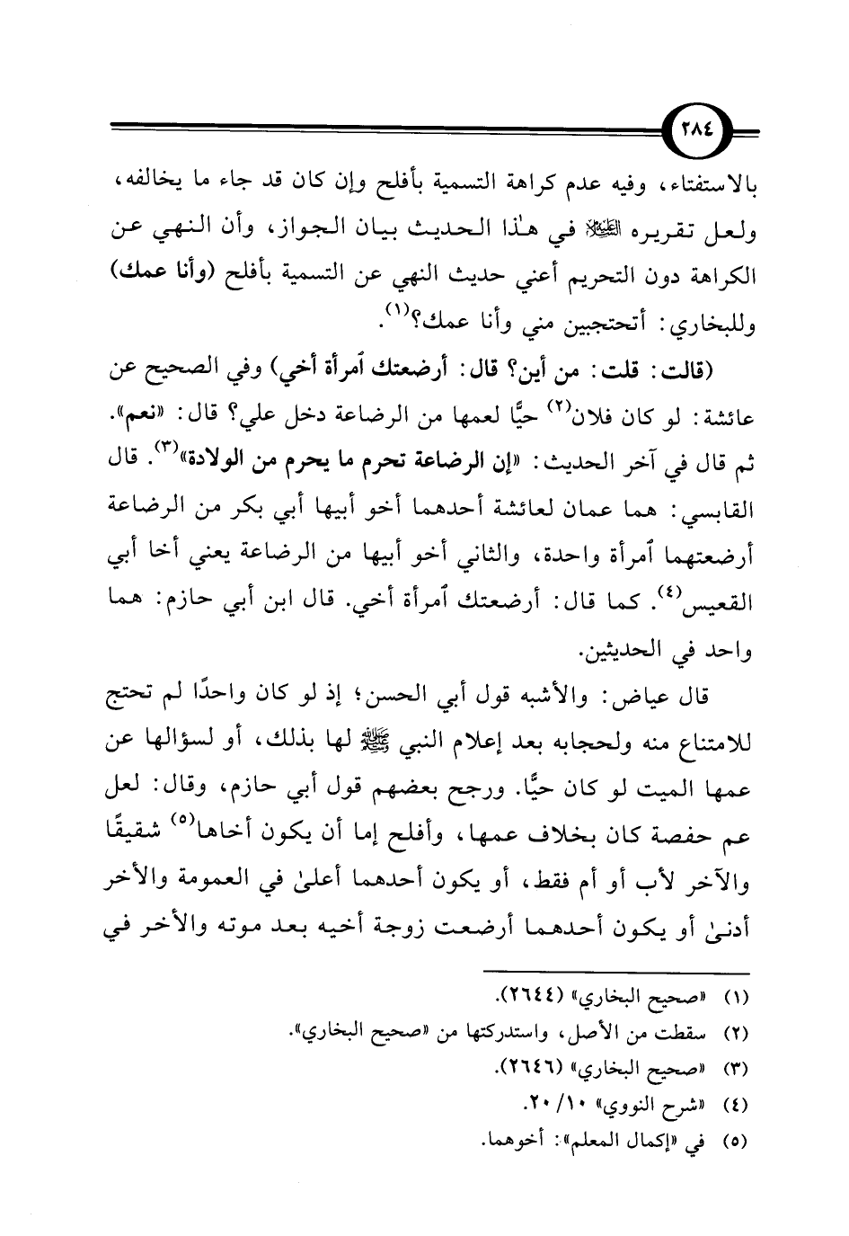 قال عياض: والأشبه قول أبي الحسن؛ إذ لو كان واحدًا لم تحتج للامتناع منه ولحجابه بعد إعلام النبي - صلى الله عليه وسلم - لها بذلك، أو لسؤالها عن عمها الميت لو كان حيًّا. ورجح بعضهم قول أبي حازم، وقال: لعل عم حفصة كان بخلاف عمها، وأفلح إما أن يكون أخاها (¬5) شقيقًا والآخر لأب أو أم فقط، أو يكون أحدهما أعلى في العمومة والأخر أدنى أو يكون أحدهما أرضعت زوجة أخيه بعد موته والأخر في