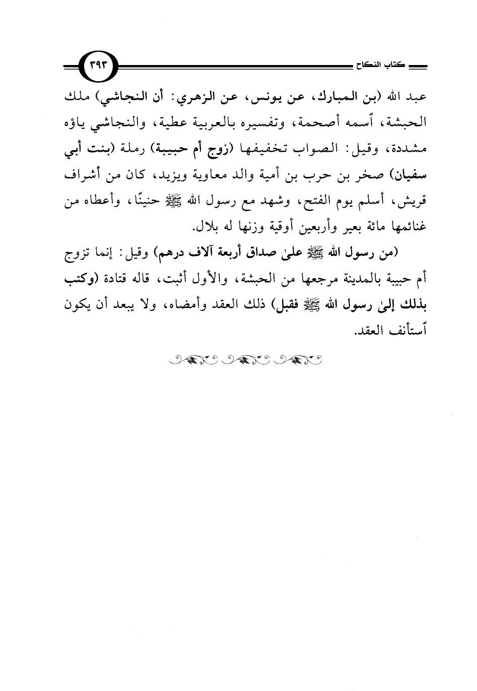 عبد الله (بن المبارك، عن يونس، عن الزهري: أن النجاشي) ملك الحبشة، اسمه أصحمة، وتفسيره بالعربية عطية، والنجاشي ياؤه مشددة، وقيل: الصواب تخفيفها (زوج أم حبيبة) رملة (بنت أبي سفيان) صخر بن حرب بن أمية والد معاوية ويزيد، كان من أشراف قريش، أسلم يوم الفتح، وشهد مع رسول الله - صلى الله عليه وسلم - حنينًا، وأعطاه من غنائمها مائة بعير وأربعين أوقية وزنها له بلال.