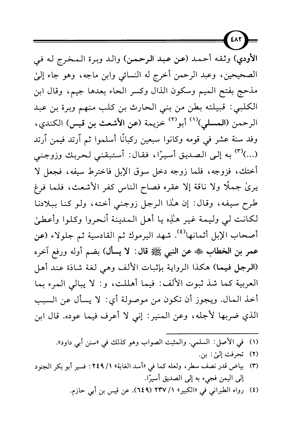 (¬3) بياض قدر نصف سطر، ولعله كما في "أسد الغابة" 1/ 249: فسير أبو بكر الجنود إلى اليمن فجيء به إلى الصديق أسيرًا.