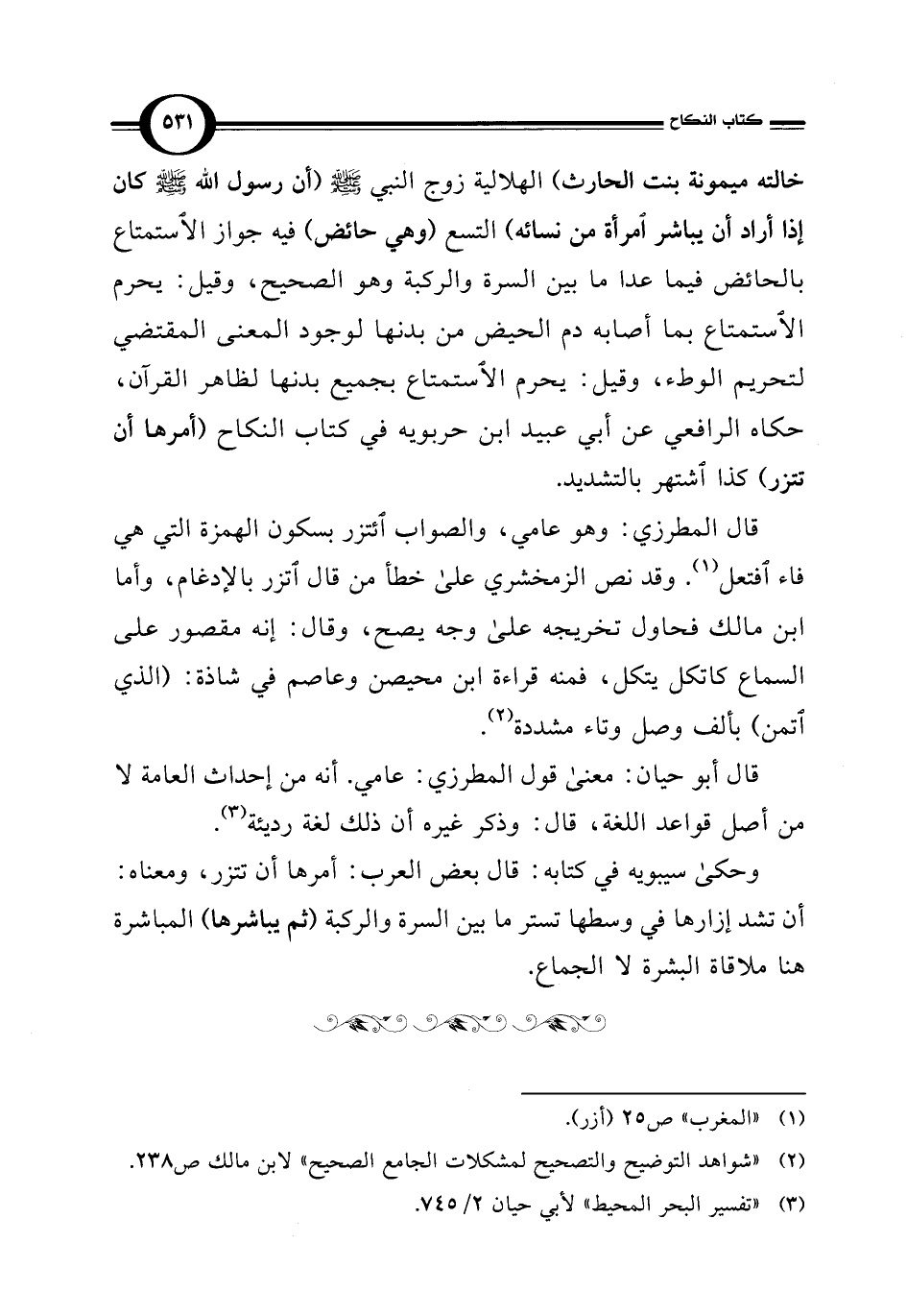 (¬2) "شواهد التوضيح والتصحيح لمشكلات الجامع الصحيح" لابن مالك ص 238.