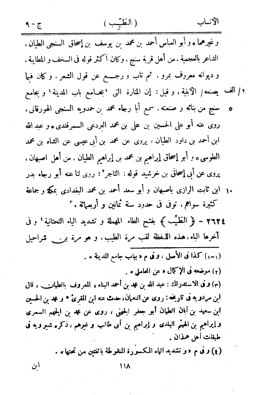 وغيرهما وأبو العباس أحمد بن محمد بن يوسف بن إسحاق السنجى الطيان، الشاعر بالعجمية، من أهل قرية سنج، وكان أكثر قوله في السخف والمطايبة، وديوانه معروف بمرو، ثم تاب ورجع عن قول الشعر، وكان فيما 291/ ألف يصنعه/ الأبنية، وقيل: إن المنارة التي [1] بجامع باب المدينة [1] وبجامع سنج من بنائه وصنعته، سمع أبا رجاء محمد بن حمدويه السنجى الهورقانى، روى عنه أبو على الحسين بن على بن محمد البردعي السمرقندي وعبد الله ابن أحمد بن داود الطيان، يروى عن محمد بن أبى عيسى عن الشاه بن محمد الطوسي وأبو إسحاق إبراهيم بن محمد بن إبراهيم الطيان، من أهل أصبهان، يروى عن أبى إسحاق بن خرشيد قوله: التاجر [2] ، روى لنا عنه أبو رجاء بدر ابن ثابت الرازيّ بأصبهان وأبو سعد أحمد بن محمد البغدادي بمكة وجماعة كثيرة سواهم، توفى في حدود سنة ثمانين وأربعمائة. [3]