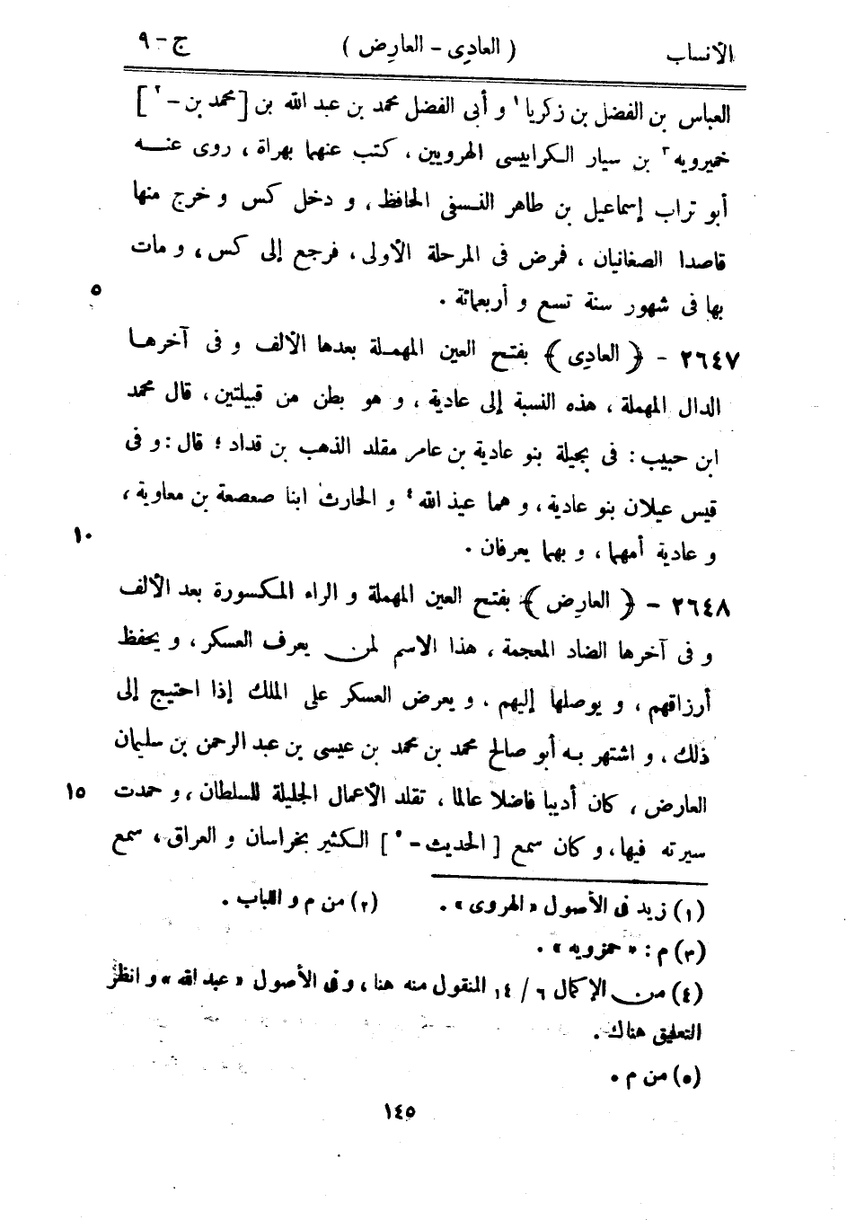 بفتح العين المهملة والراء المكسورة بعد الألف وفي آخرها الضاد المعجمة، هذا الاسم لمن يعرف العسكر، ويحفظ أرزاقهم، ويوصلها إليهم، ويعرض العسكر على الملك إذا احتيج إلى ذلك، واشتهر به أبو صالح محمد بن محمد بن عيسى بن عبد الرحمن بن سليمان العارض، كان أديبا فاضلا عالما، تقلد الأعمال الجليلة للسلطان، وحمدت سيرته فيها، وكان سمع [الحديث-[5]] الكثير بخراسان والعراق، سمع