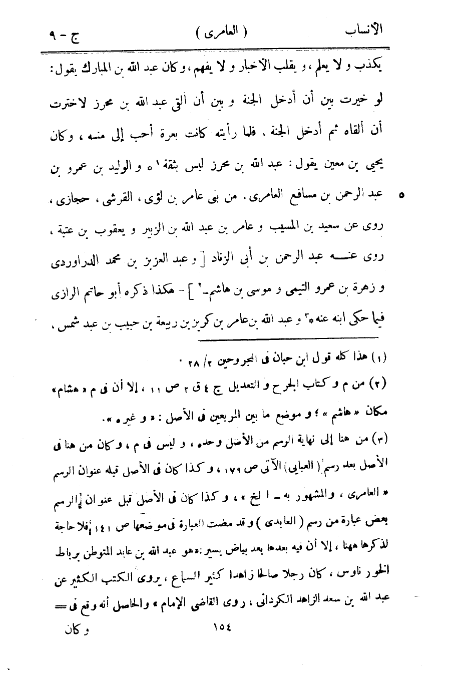 [3] من هنا إلى نهاية الرسم من الأصل وحده، وليس في م، وكان من هنا في الأصل بعد رسم (العبايى) الآتي ص 179، وكذا كان في الأصل قبله عنوان الرسم «العامري، والمشهور به- إلخ» ، وكذا كان في الأصل قبل عنوان الرسم بعض عبارة من رسم (العابدي) وقد مضت العبارة في موضعها ص 141 فلا حاجة لذكرها هاهنا، إلا أن فيه بعدها بعد بياض يسير: «هو عبد الله بن عابد المتوطن برباط الخور ناوس، كان رجلا صالحا زاهدا كثير السماع، يروى الكتب الكثير عن عبد الله بن سعد الزاهد الكردانى، روى القاضي الإمام» والحاصل أنه وقع في