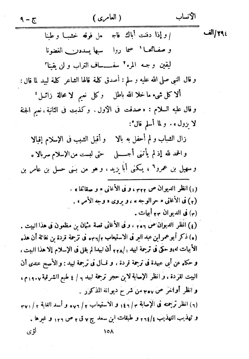 [5] ذكر أبو عمر ابن عبد البر في الاستيعاب 2/ 536 في ترجمة قردة بن نفاثة أن هذه الأبيات له، وحكى في ترجمة لبيد 1/ 228 أن لبيدا لم يقل في الإسلام إلا هذا البيت، وحكاه عن أبى عبيدة في ترجمة قردة، وقال في ترجمة لبيد: والأصح عندي أن البيت لقردة، وانظر الإصابة لابن حجر ترجمة لبيد 6/ 4 طبع الشرقية 1907 م، وانظر أواخر ص 357 من شرح ديوانه المذكور.