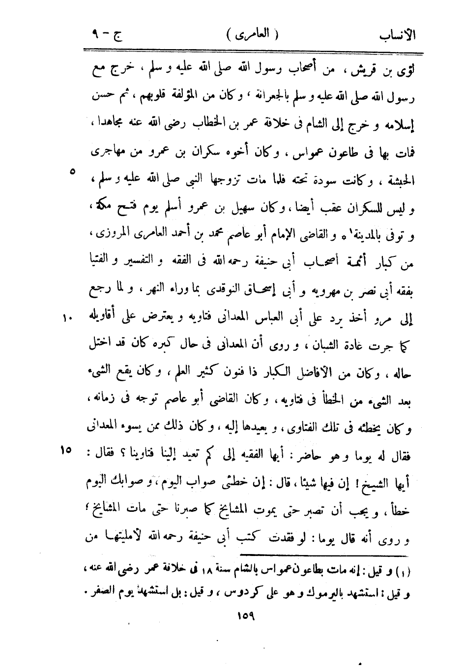 لؤيّ بن قريش، من أصحاب رسول الله صلى الله عليه وسلم، خرج مع رسول الله صلى الله عليه وسلم بالجعرانة، وكان من المؤلفة قلوبهم، ثم حسن إسلامه وخرج إلى الشام في خلافة عمر بن الخطاب رضى الله عنه مجاهدا، فمات بها في طاعون عمواس، وكان أخوه سكران بن عمرو من مهاجري الحبشة، وكانت سودة تحته فلما مات تزوجها النبي صلى الله عليه وسلم، وليس للسكران عقب أيضا، وكان سهيل بن عمرو أسلم يوم فتح مكة، وتوفى بالمدينة [1] والقاضي الإمام أبو عاصم محمد بن أحمد العامري المروزي، من كبار أئمة أصحاب أبى حنيفة رحمه الله في الفقه والتفسير والفتيا بفقه أبى نصر بن مهرويه وأبى إسحاق النوقدى بما وراء النهر، ولما رجع إلى مرو أخذ يرد على أبى العباس المعداني فتاويه ويعترض على أقاويله كما جرت عادة الشبان، وروى أن المعداني في حال كبره كان قد اختل حاله، وكان من الأفاضل الكبار ذا فنون كثير العلم، وكان يقع الشيء بعد الشيء من الخطأ في فتاويه، وكان القاضي أبو عاصم توجه في زمانه، وكان يخطئه في تلك الفتاوى، ويعيدها إليه، وكان ذلك ممن يسوء المعداني فقال له يوما وهو حاضر: أيها الفقيه إلى كم تعيد إلينا فتاوينا؟ فقال: