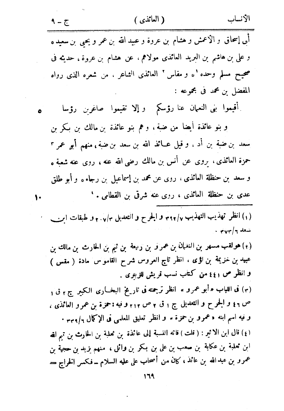 [3] في اللباب «أبو عمرو» انظر ترجمته في تاريخ البخاري الكبير ج 2 ق 1 ص 46 والجرح والتعديل ج 1 ق 2 ص 212 وفيه: حمزة بن عمرو العائذى، وفيه اسم ابنه «عمرو بن حمزة» وانظر تعليق المعلمي في الإكمال 6/ 339.