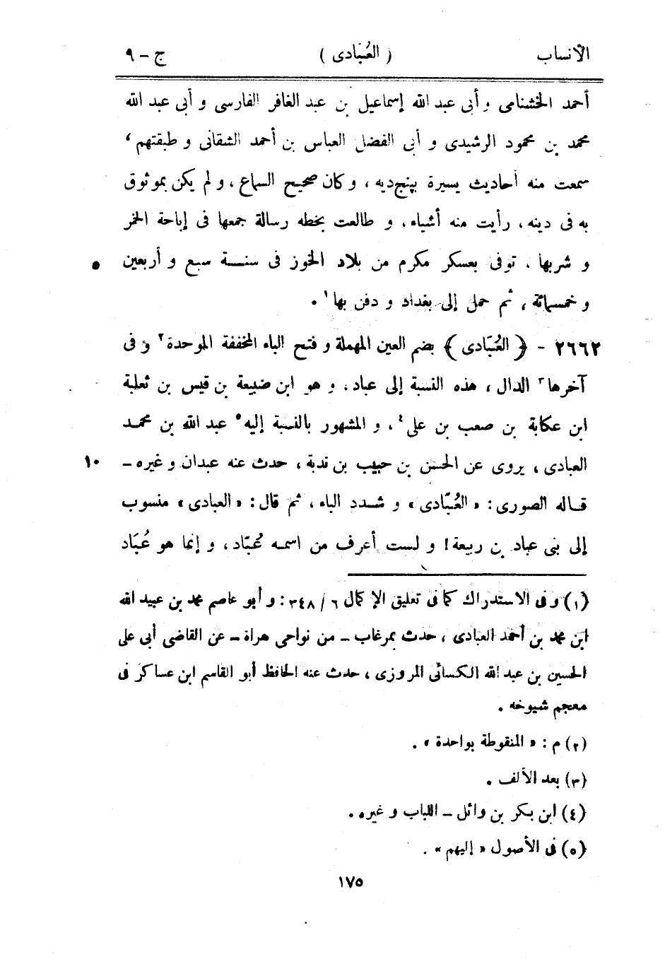 بضم العين المهملة وفتح الباء المخففة الموحدة [2] وفي آخرها [3] الدال، هذه النسبة إلى عباد، وهو ابن ضبيعة بن قيس بن ثعلبة ابن عكابة بن صعب بن على [4] ، والمشهور بالنسبة إليه [5] عبد الله بن محمد العبادي، يروى عن الحسن بن حبيب بن ندبة، حدث عنه عبدان وغيره- قاله الصوري: «العبادي» وشدد الباء، ثم قال: «العبادي» منسوب إلى بنى عباد بن ربيعة! ولست أعرف من اسمه عبّاد، وإنما هو عباد