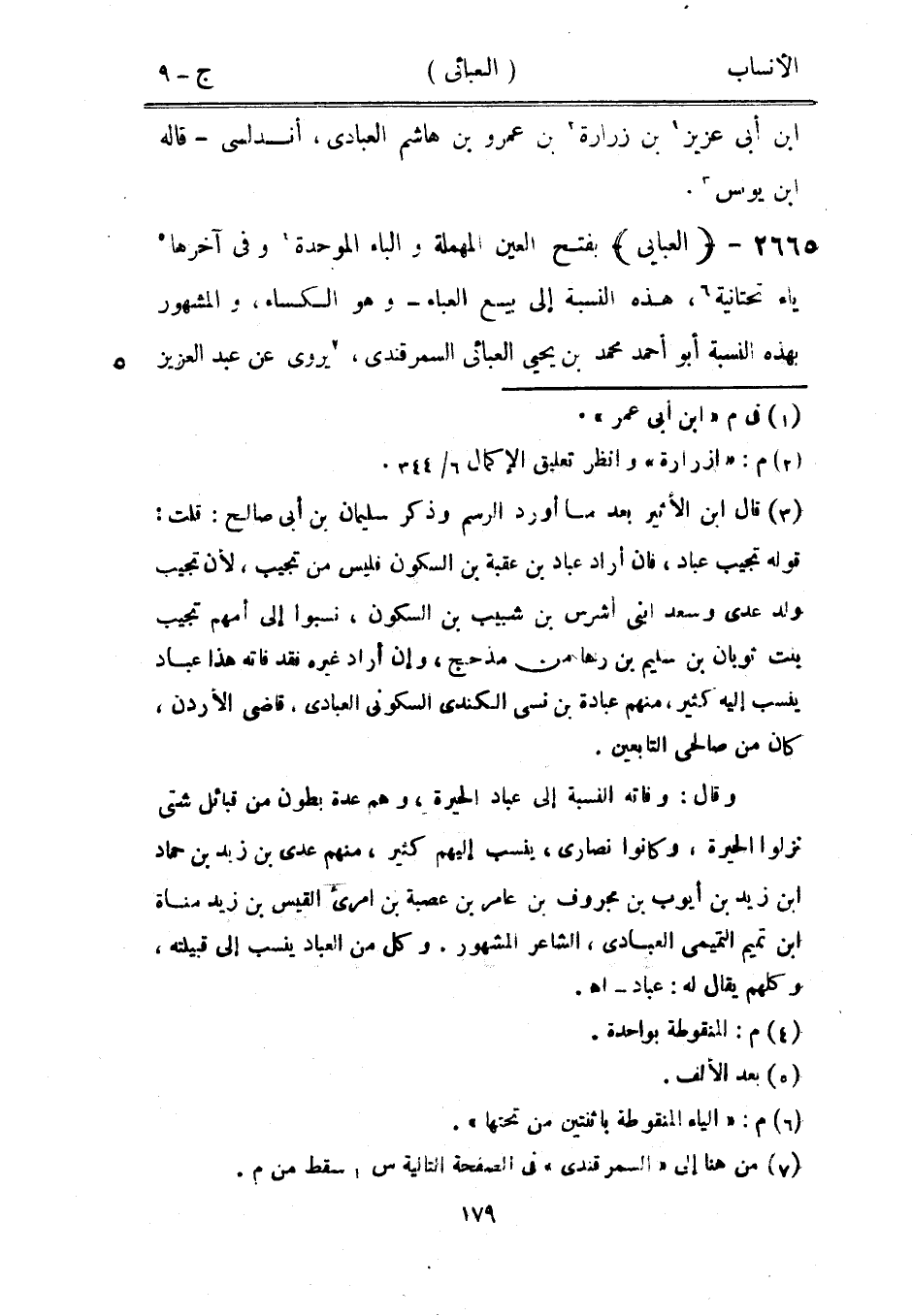 بفتح العين المهملة والباء الموحدة [4] وفي آخرها [5] ياء تحتانية [6] ، هذه النسبة إلى بيع العباء- وهو الكساء، والمشهور بهذه النسبة أبو أحمد محمد بن يحيى العبائى السمرقندي، [7] يروى عن عبد العزيز