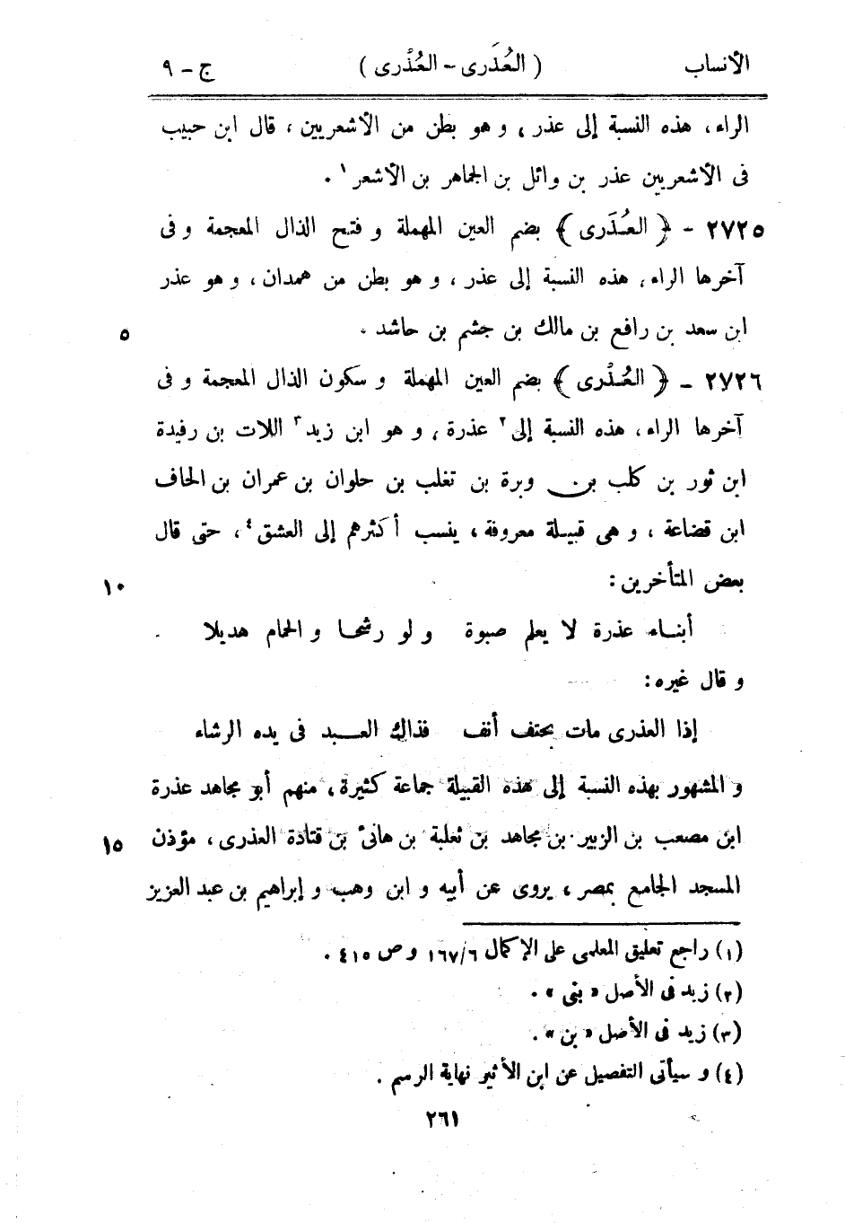 بضم العين المهملة وسكون الذال المعجمة وفي آخرها الراء، هذه النسبة إلى [2] عذرة، وهو ابن زيد [3] اللات بن رفيدة ابن ثور بن كلب بن وبرة بن تغلب بن حلوان بن عمران بن الحاف ابن قضاعة، وهي قبيلة معروفة، ينسب أكثرهم إلى العشق [4] ، حتى قال بعض المتأخرين: