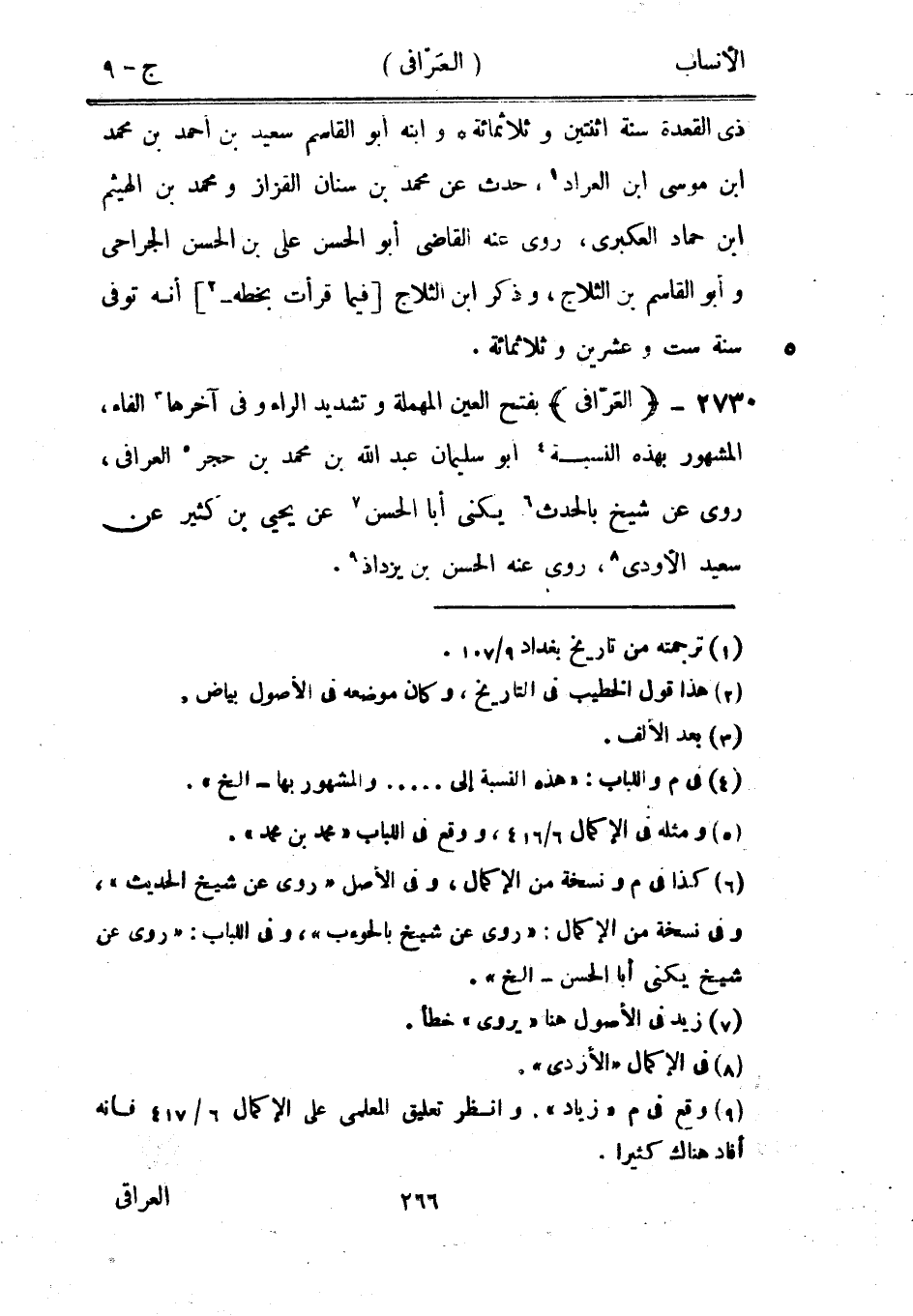 بفتح العين المهملة وتشديد الراء وفي آخرها [3] الفاء، المشهور بهذه النسبة [4] ابو سليمان عبد الله بن محمد بن حجر [5] العرافى، روى عن شيخ بالحدث [6] يكنى أبا الحسن [7] عن يحيى بن كثير عن سعيد الأودي [8] ، روى عنه الحسن بن يزداذ [9] .