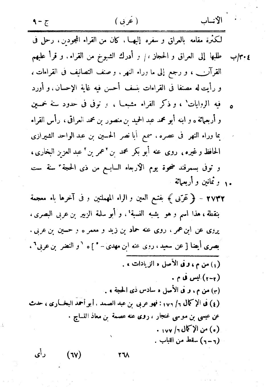 [4] في الإكمال 6/ 176: فهو عربي بن عبد الصمد، أبو أحمد البخاري، حدث عن عيسى بن موسى غنجار، روى عنه عصمة بن معاذ النساج.