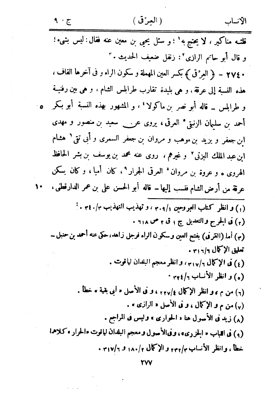 [9] في اللباب «الجزري» ، وفي الأصول ومعجم البلدان لياقوت «الحرار» كلاهما خطأ، وانظر الأنساب 3/ 232 والإكمال 2/ 180 و 6/ 317.