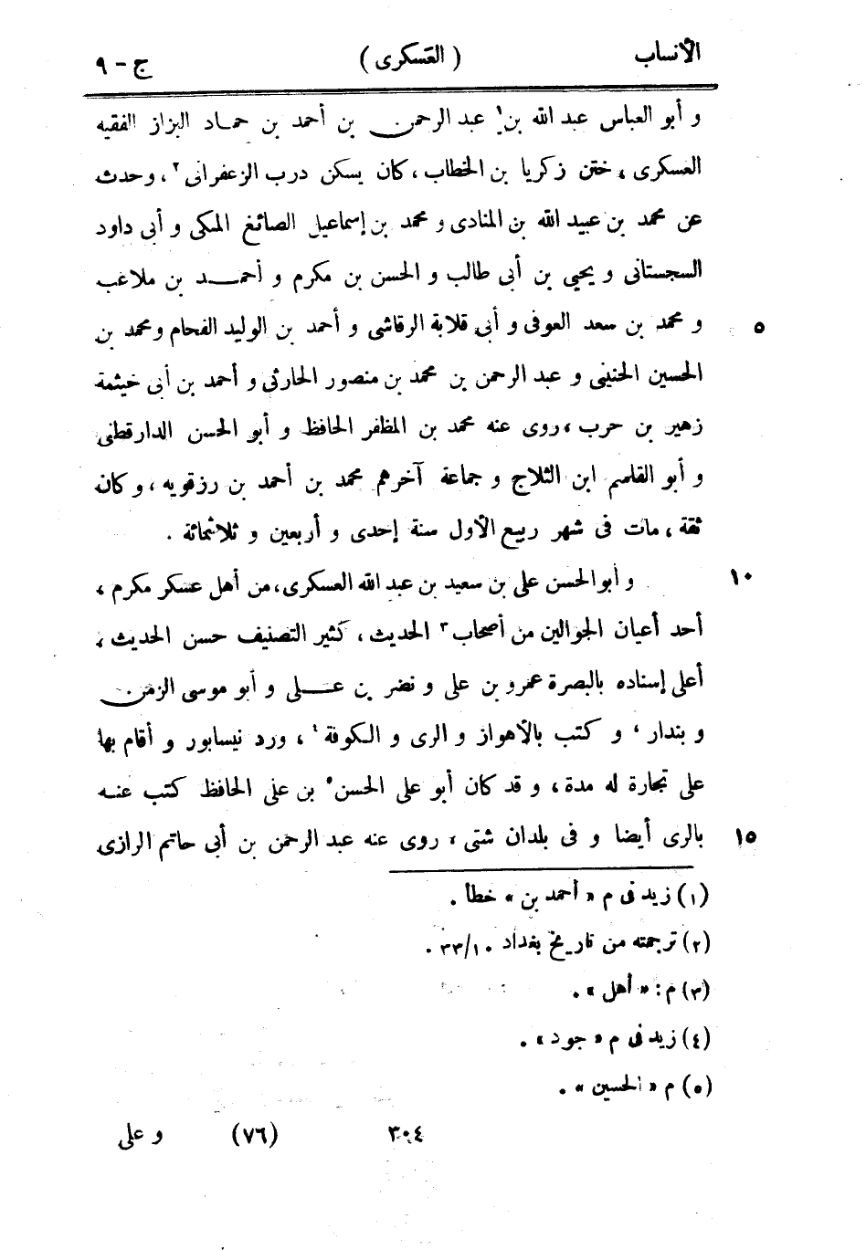 وأبو العباس عبد الله بن [1] عبد الرحمن بن أحمد بن حماد البزاز الفقيه العسكري، ختن زكريا بن الخطاب، كان يسكن درب الزعفرانيّ [2] ، وحدث عن محمد بن عبيد الله بن المنادي ومحمد بن إسماعيل الصائغ المكيّ وأبى داود السجستاني ويحيى بن أبى طالب والحسن بن مكرم وأحمد بن ملاعب ومحمد بن سعد العوفيّ وأبى قلابة الرقاشيّ وأحمد بن الوليد الفحام ومحمد بن الحسين الحنينى وعبد الرحمن بن محمد بن منصور الحارثي وأحمد بن أبى خيثمة زهير بن حرب، روى عنه محمد بن المظفر الحافظ وأبو الحسن الدار قطنى وأبو القاسم ابن الثلاج وجماعة آخرهم محمد بن أحمد بن رزقويه، وكان ثقة، مات في شهر ربيع الأول سنة إحدى وأربعين وثلاثمائة.