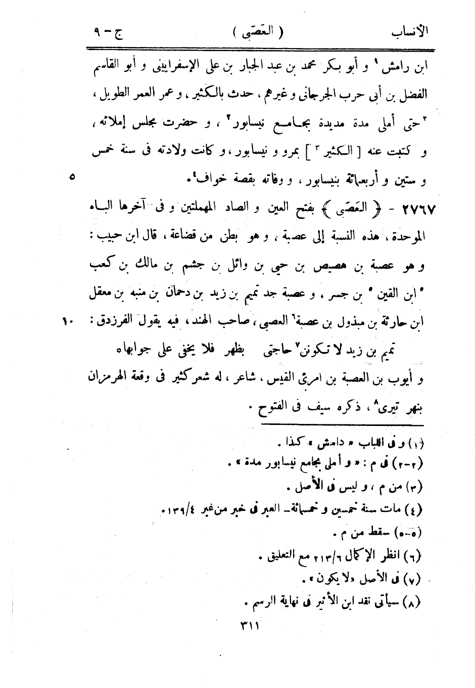 بفتح العين والصاد المهملتين وفي آخرها الباء الموحدة، هذه النسبة إلى عصبة، وهو بطن من قضاعة، قال ابن حبيب: