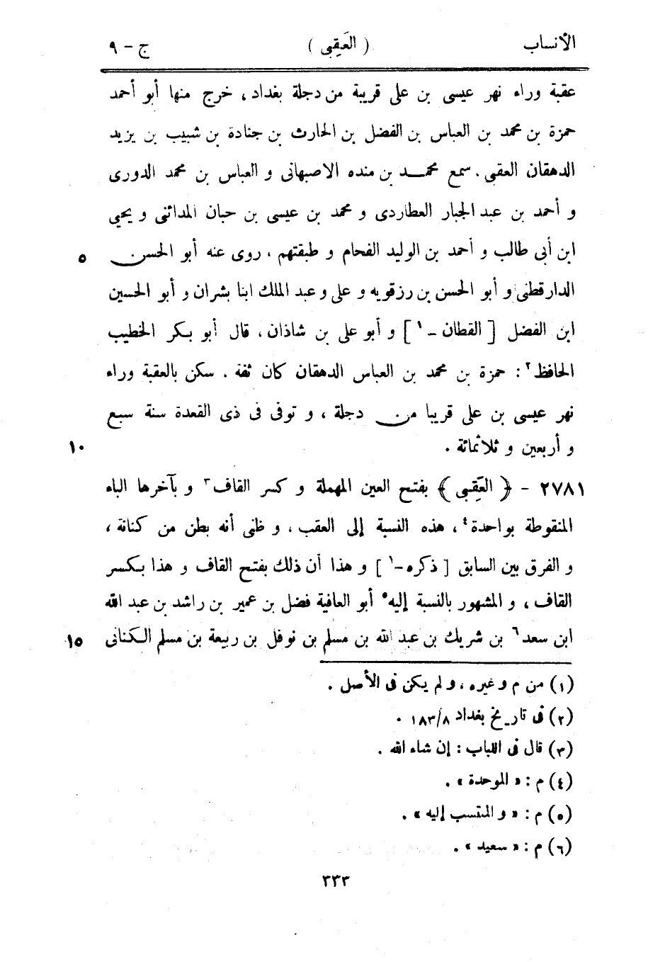 بفتح العين المهملة وكسر القاف [3] وبآخرها الباء المنقوطة بواحدة [4] ، هذه النسبة إلى العقب، وظني أنه بطن من كنانة، والفرق بين السابق [ذكره-[1]] وهذا أن ذلك بفتح القاف وهذا بكسر القاف، والمشهور بالنسبة إليه [5] أبو العافية فضل بن عمير بن راشد بن عبد الله ابن سعد [6] بن شريك بن عبد الله بن مسلم بن نوفل بن ربيعة بن مسلم الكناني