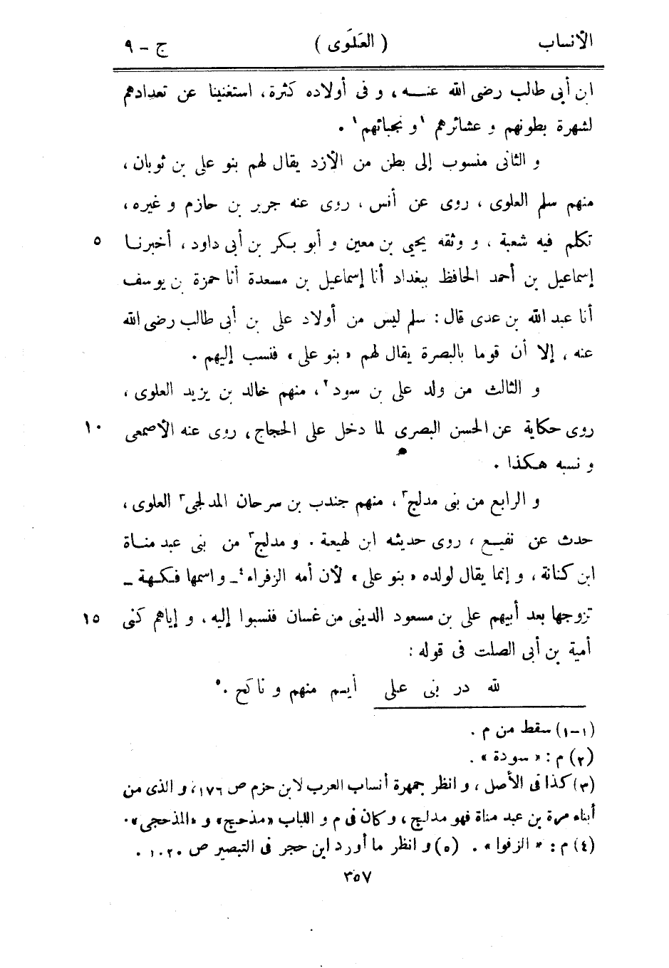 والثاني منسوب إلى بطن من الأزد يقال لهم بنو على بن ثوبان، منهم سلم العلويّ، روى عن أنس، روى عنه جرير بن حازم وغيره، تكلم فيه شعبة، ووثقه يحيى بن معين وأبو بكر بن أبى داود، أخبرنا إسماعيل بن أحمد الحافظ ببغداد أنا إسماعيل بن مسعدة أنا حمزة بن يوسف أنا عبد الله بن عدي قال: سلم ليس من أولاد على بن أبى طالب رضى الله عنه، إلا أن قوما بالبصرة يقال لهم «بنو على» فنسب إليهم.