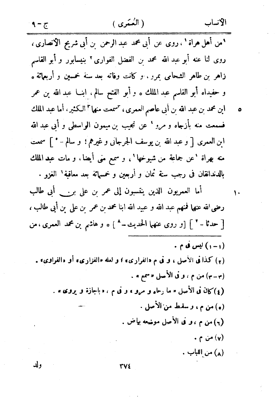 أما العمريون الذين ينتسبون إلى عمر بن على بن أبى طالب رضى الله عنهما فمنهم عبد الله وعبيد الله ابنا محمد بن عمر بن على بن أبى طالب، [حدثا-[7]] [وروى عنهما الحديث-[8]] وهاشم بن محمد العمرى، من