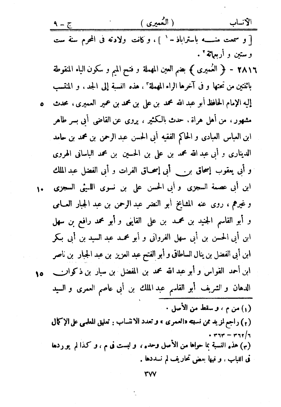 [2] راجع لمزيد ممن نسبته «العمرى» وتعدد الانتساب: تعليق المعلمي على الإكمال 6/ 362- 363.