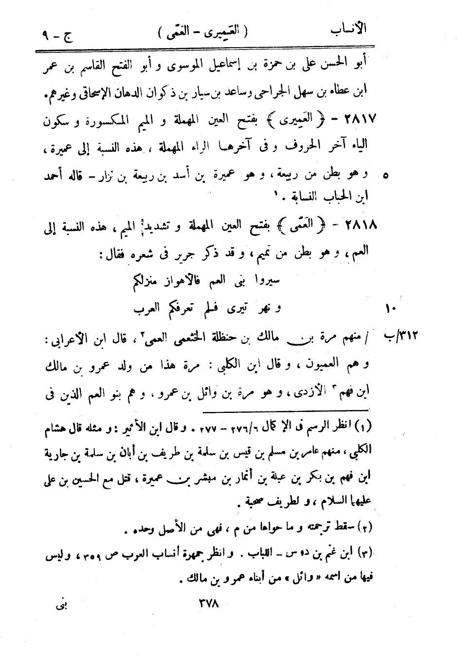 بفتح العين المهملة وتشديد الميم، هذه النسبة إلى العم، وهو بطن من تميم، وقد ذكر جرير في شعره فقال: