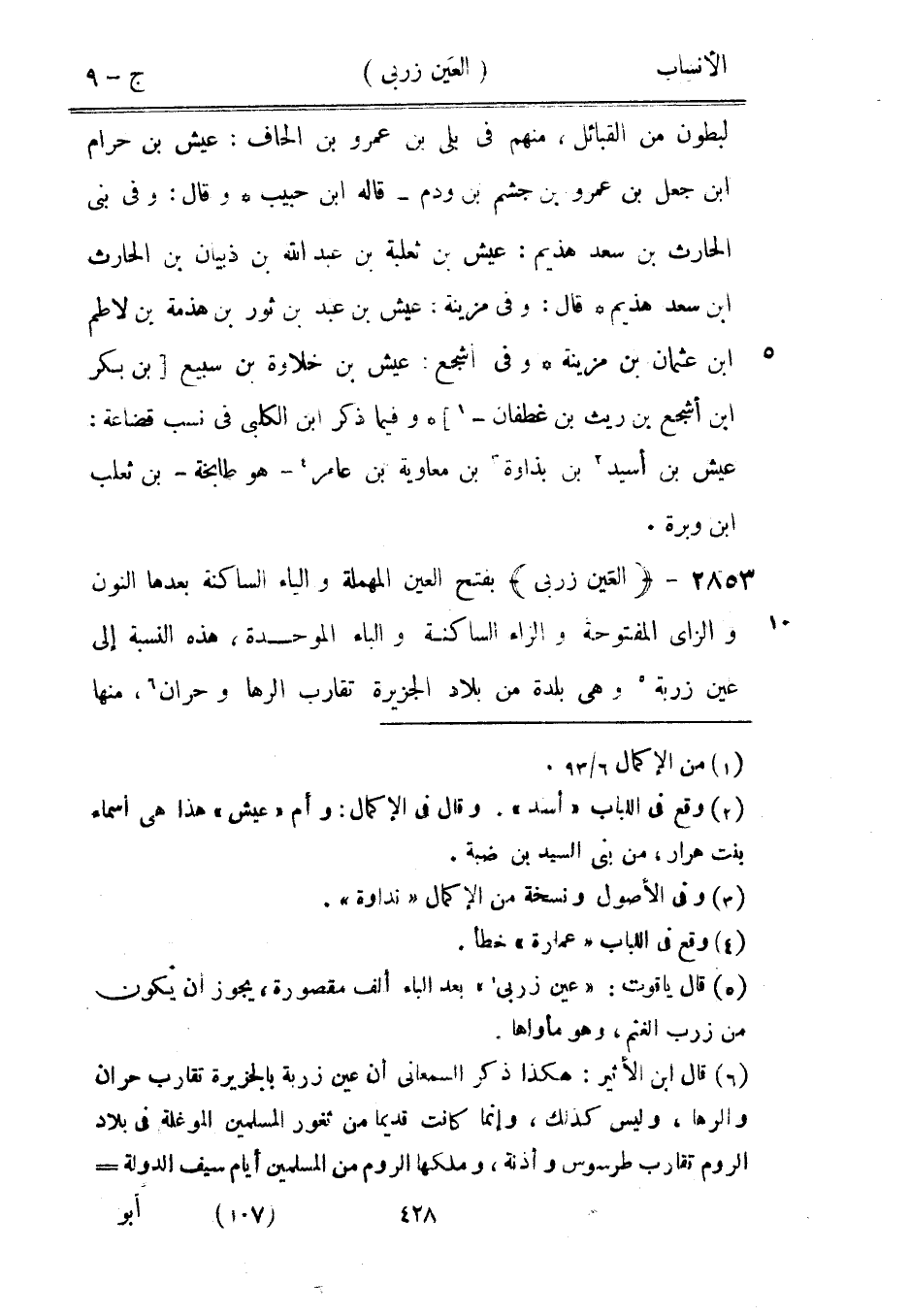 [6] قال ابن الأثير: هكذا ذكر السمعاني أن عين زربة بالجزيرة تقارب حران والرها، وليس كذلك، وإنما كانت قديما من ثغور المسلمين الموغلة في بلاد الروم تقارب طرسوس وأذنة، وملكها الروم من المسلمين أيام سيف الدولة