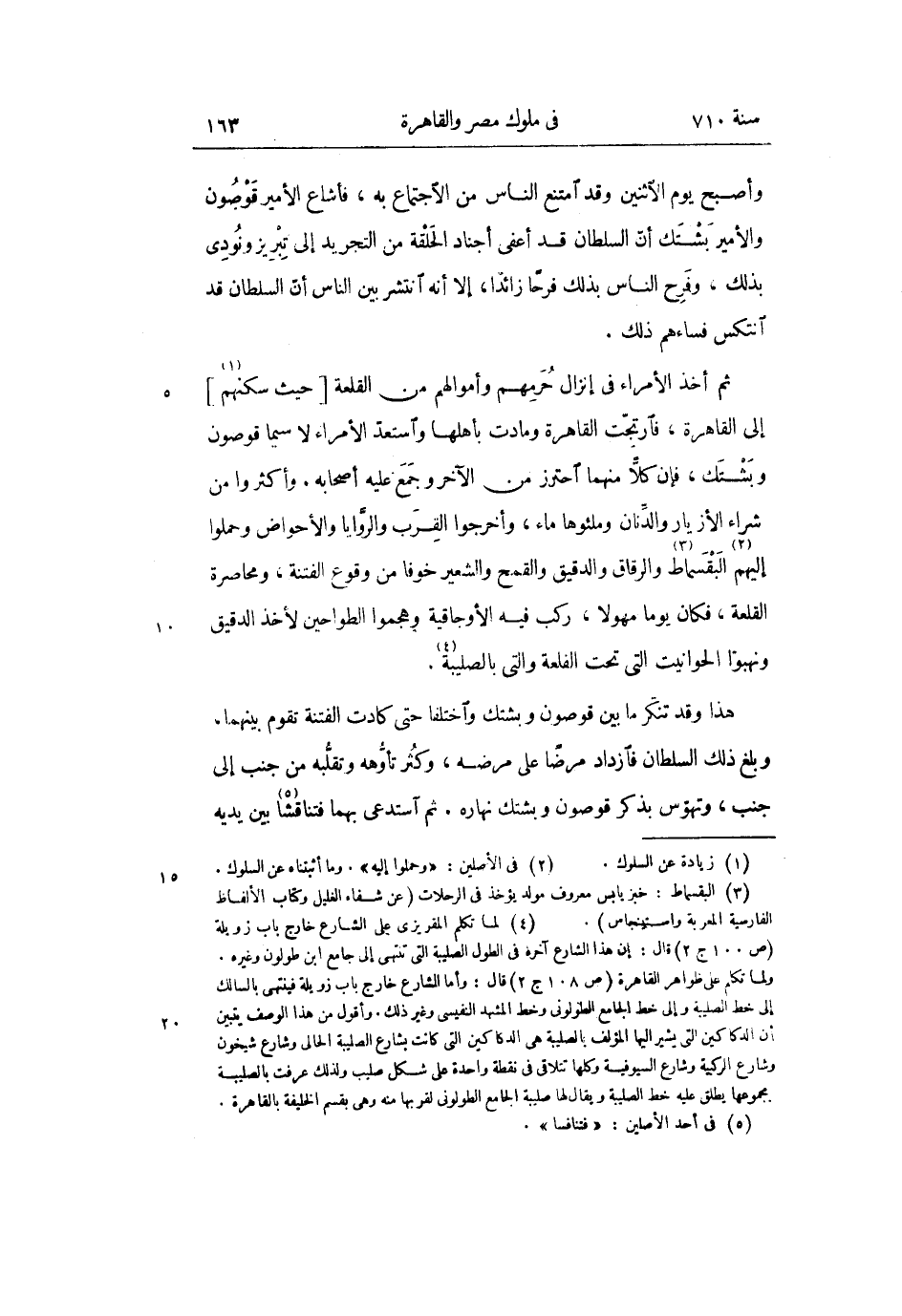 ثم أخذ الأمراء فى إنزال حرمهم وأموالهم من القلعة [حيث سكنهم «1» ] إلى القاهرة، فارتجّت القاهرة ومادت بأهلها واستعدّ الأمراء لا سيما قوصون وبشتك، فإن كلّا منهما احترز من الآخر وجمع عليه أصحابه. وأكثروا من شراء الأزيار والدّنان وملئوها ماء، وأخرجوا القرب والرّوايا والأحواض وحملوا إليهم «2» البقسماط «3» والرقاق والدقيق والقمح والشعير خوفا من وقوع الفتنة، ومحاصرة القلعة، فكان يوما مهولا، ركب فيه الأوجاقية وهجموا الطواحين لأخذ الدقيق ونهبوا الحوانيت التى تحت الفلعة والتى بالصليبة «4» .