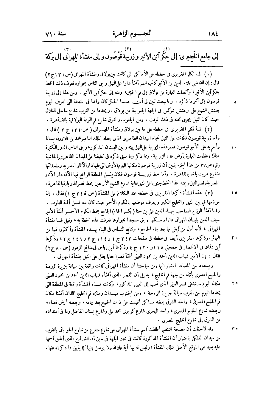 إلى جامع الخطيرىّ إلى حكر «1» ابن الأثير وزريبة «2» قوصون وإلى منشأة المهرانى «3» إلى بركة