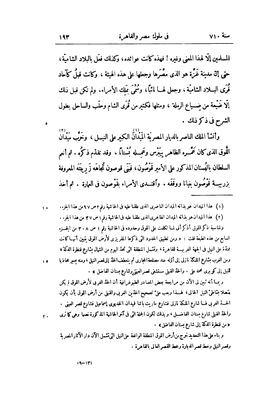 وأنشأ الملك الناصر بالديار المصريّة الميدان «1» الكبير على النيل، وخرّب ميدان «2» اللّوق الذي كان عمّره الظاهر بيبرس وعمله بستانا، وقد تقدّم ذكره. ثم أنعم السلطان بالبستان المذكور على الأمير قوصون، فبنى قوصون تجاهه زريبته المعروفة بزريبة قوصون بنيانا ووقفه، واقتدى الأمراء بقوصون فى العمارة. ثم أخذ