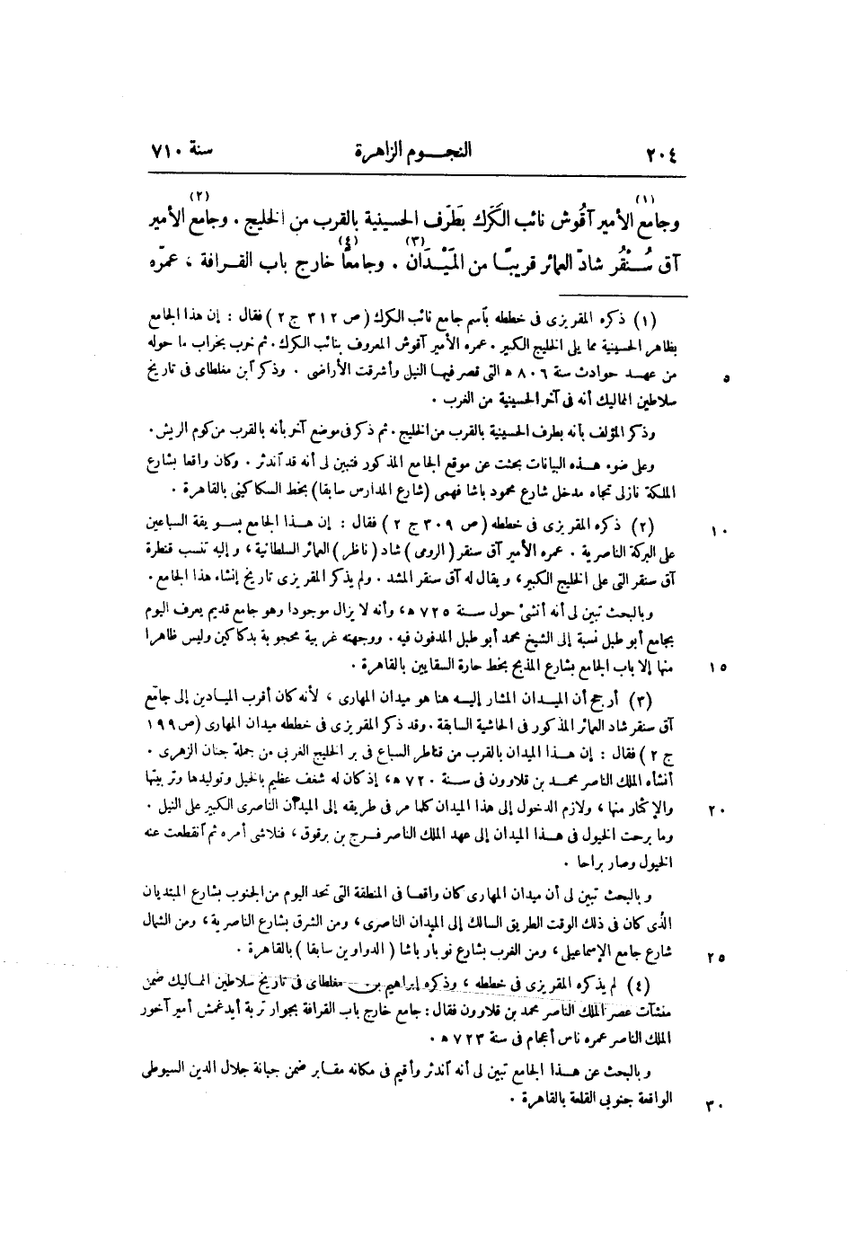 وجامع «1» الأمير آقوش نائب الكرك بطرف الحسينية بالقرب من الخليج. وجامع «2» الأمير آق سنقر شادّ العمائر قريبا من الميدان «3» . وجامعا «4» خارج باب القرافة، عمّره