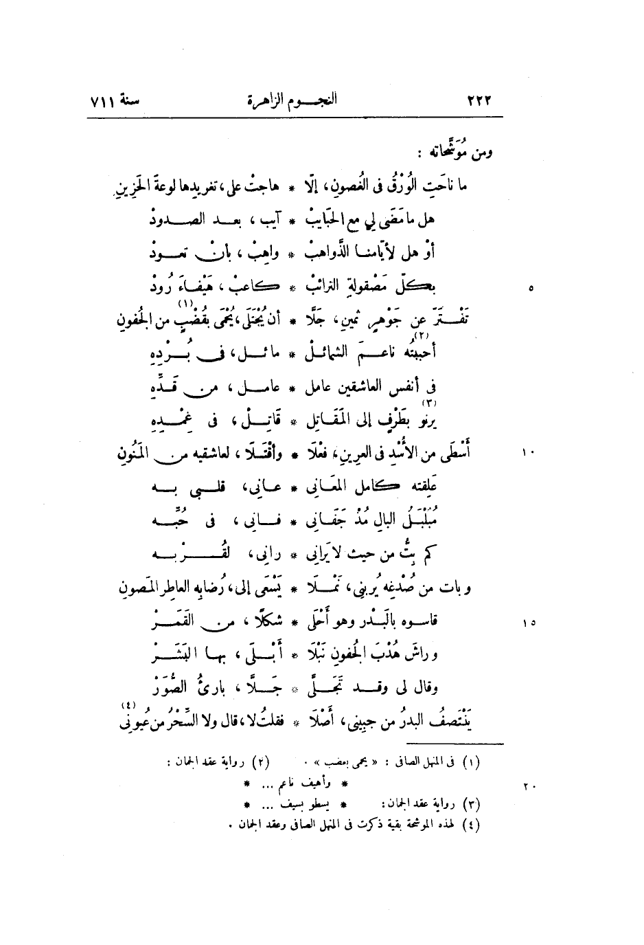 ينتصف البدر من جبينى، أصلا ... فقلت لا، قال ولا السّحر من عيونى «4»