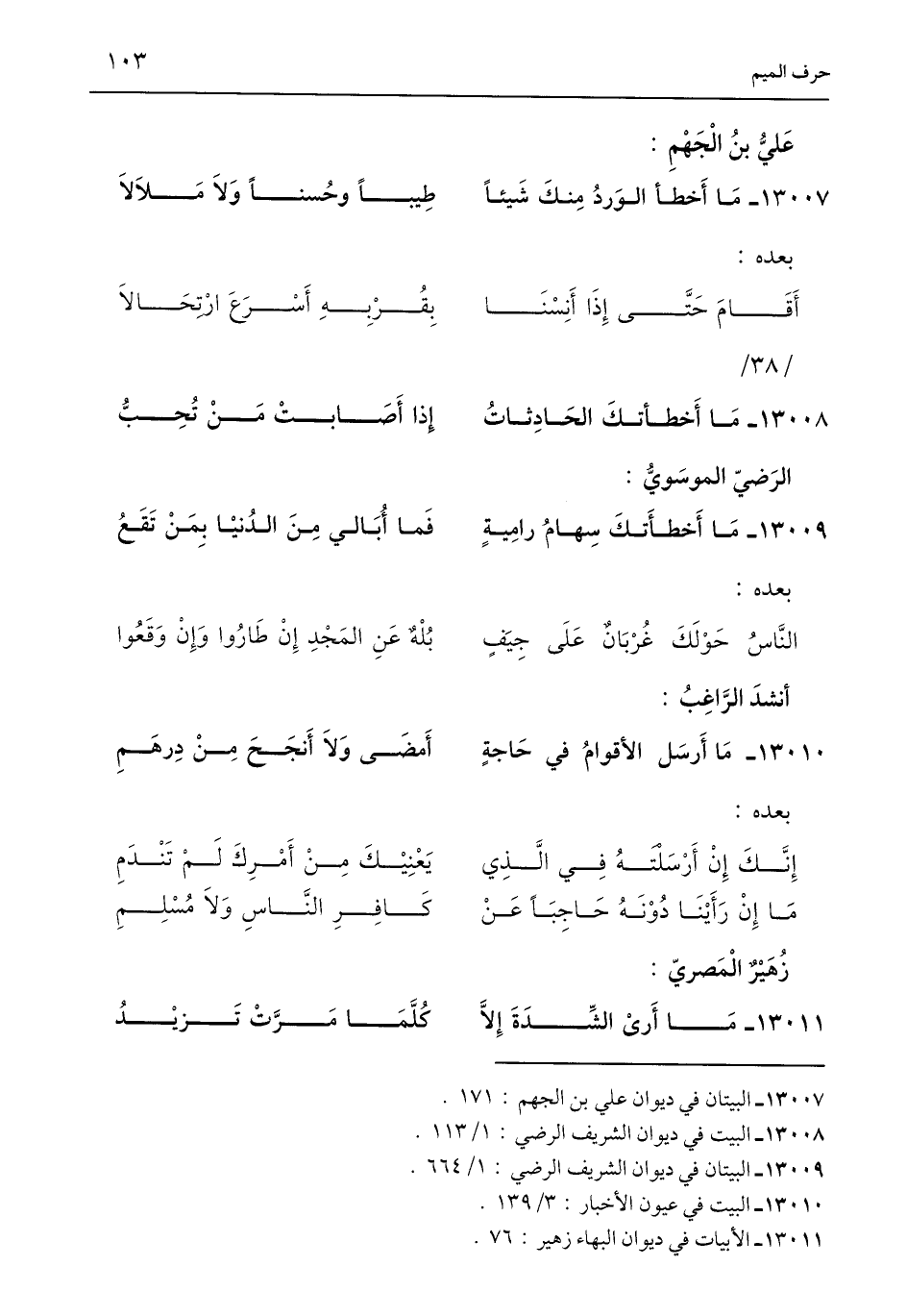 13008 - البيت في ديوان الشريف الرضي: 1/ 113.