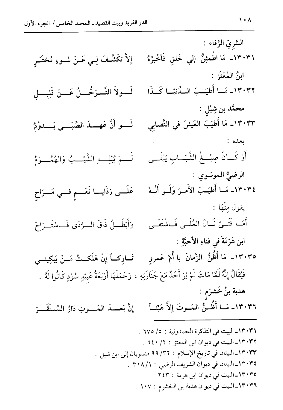 13036 - البيت في ديوان هدية بن الخشرم: 107.