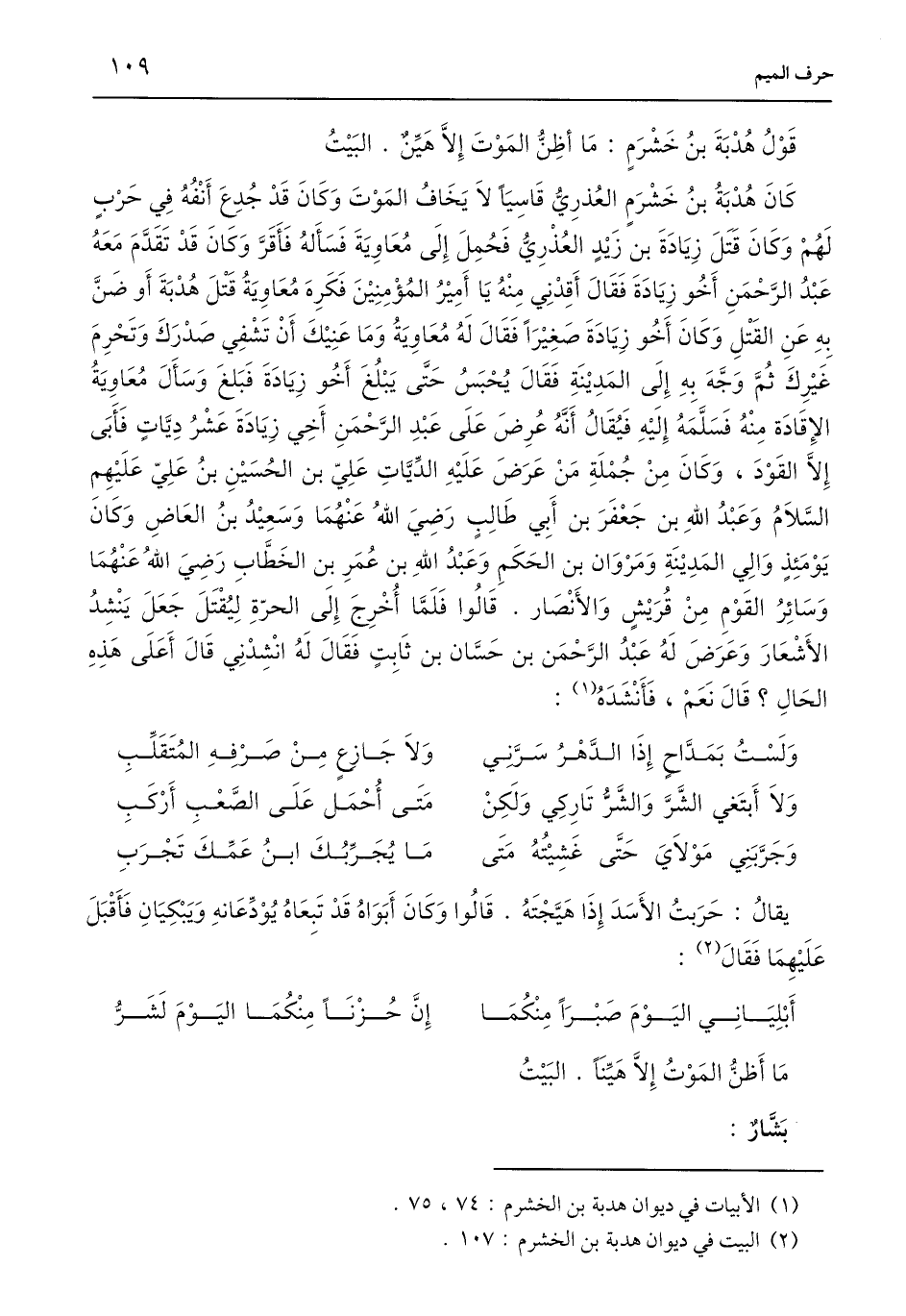 (¬1) الأبيات في ديوان هدبة بن الخشرم: 74، 75.