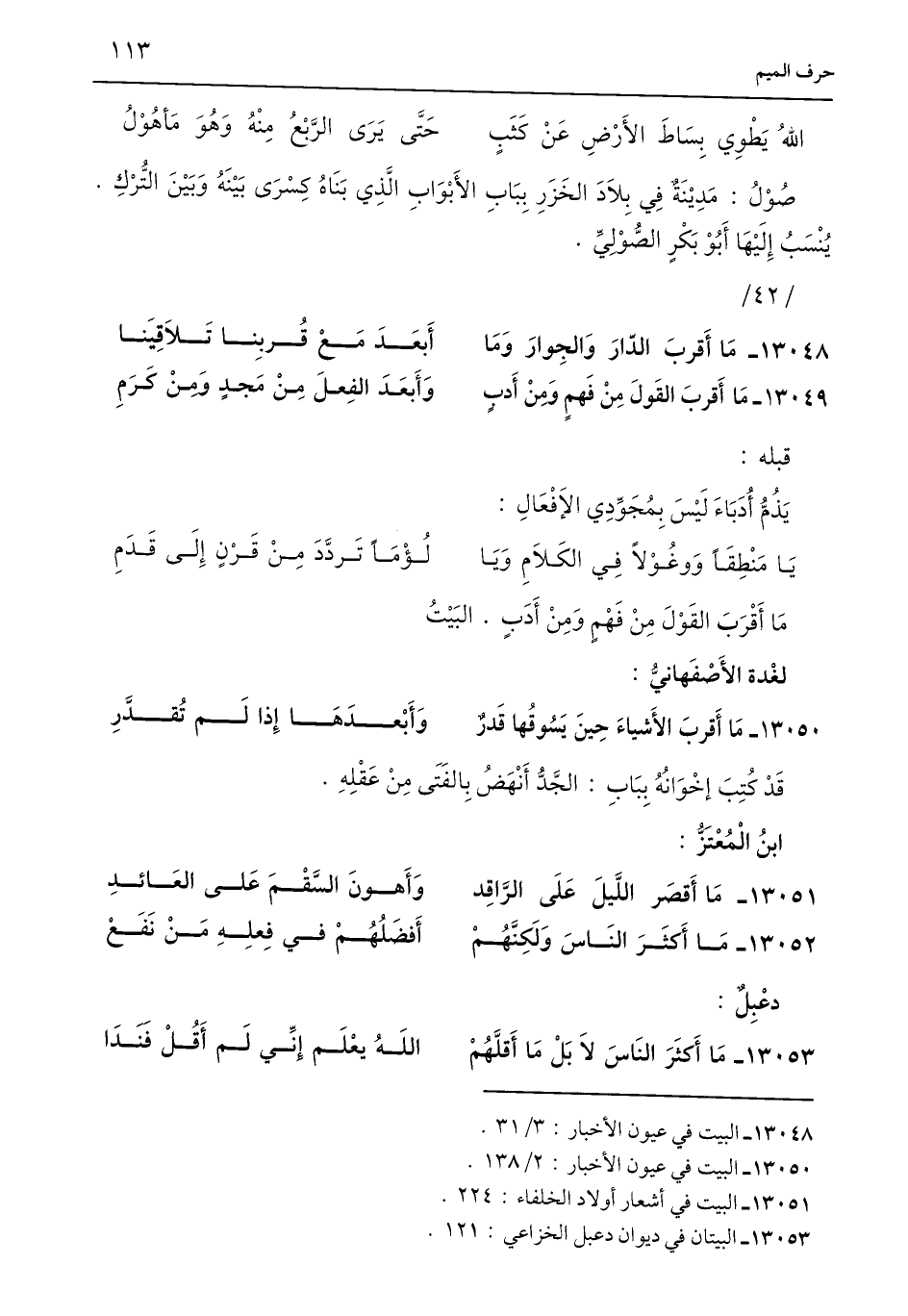 13051 - البيت في أشعار أولاد الخلفاء: 224.