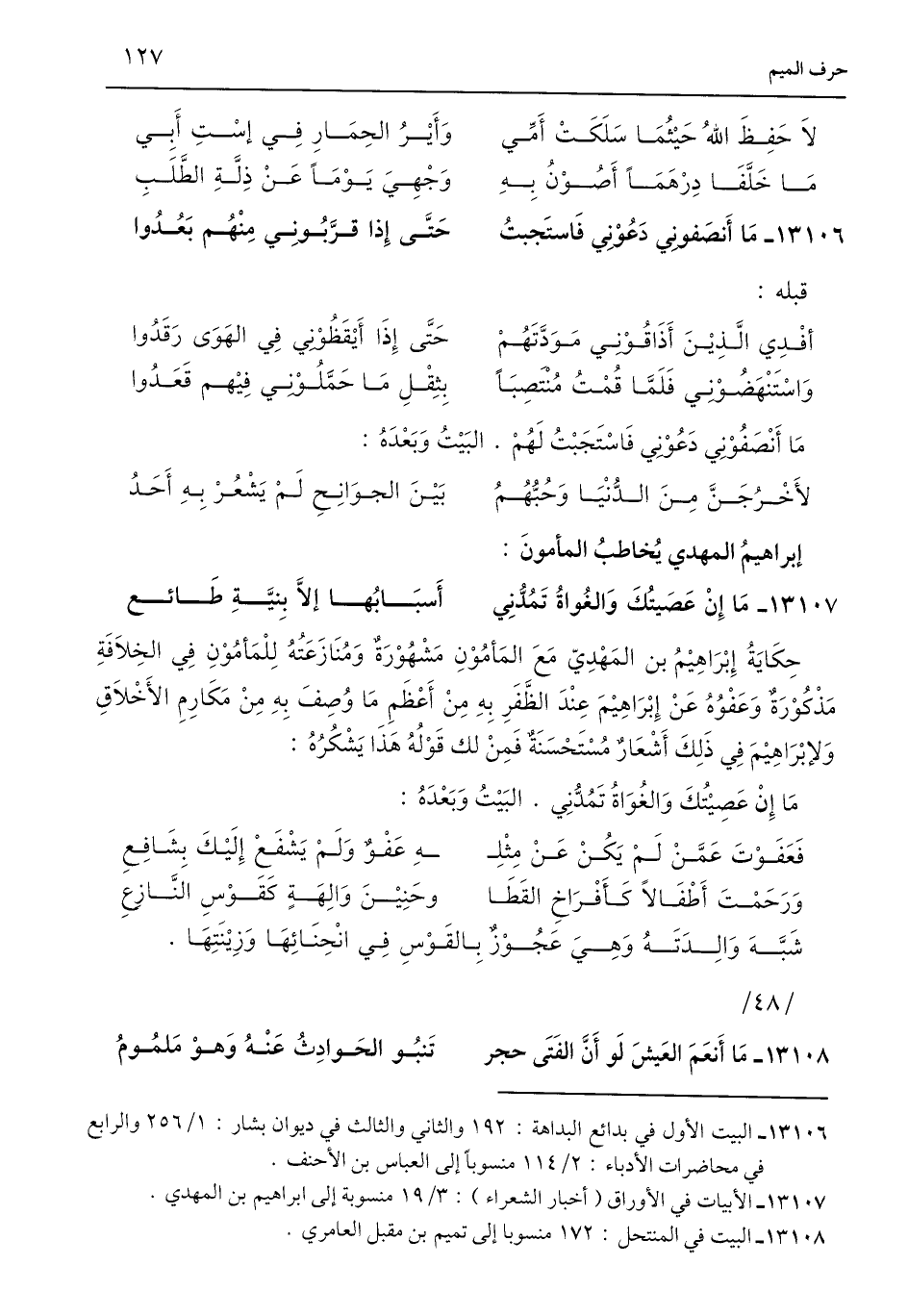 13107 - الأبيات في الأوراق (أخبار الشعراء): 3/ 19 منسوبة إلى إبراهيم بن المهدي.