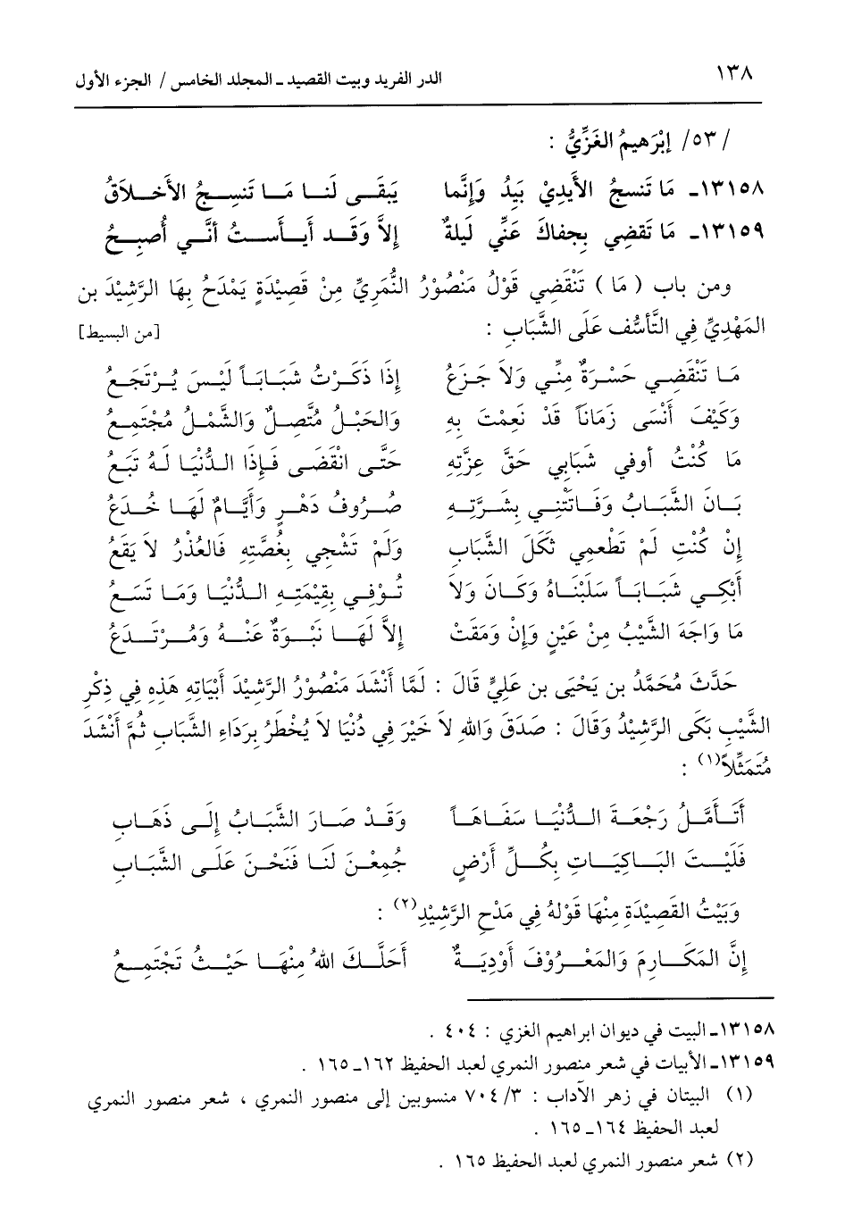 13159 - الأبيات في شعر منصور النمري لعبد الحفيظ 162 - 165.