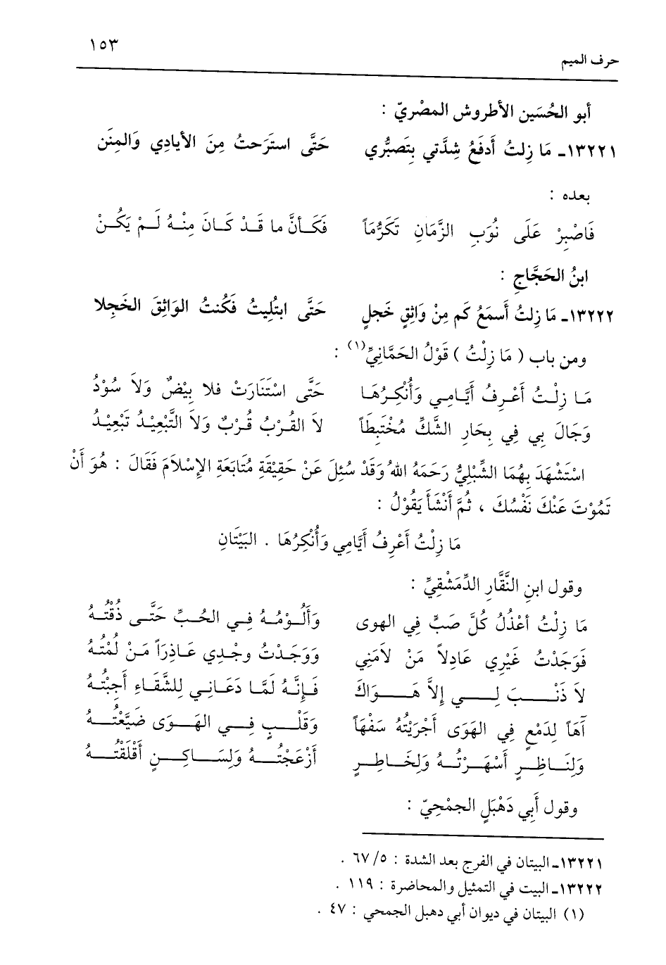 ومن باب (مَا زِلْتُ) قَوْلُ الحَمَّانِيِّ (¬1):