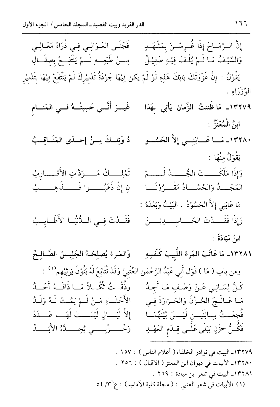 ومن باب (مَا) قَوْل أَبِي عَبْدُ الرَّحْمَن العُتْبِيِّ وَقَدْ تَتَابَعَ لَهُ بَنُوْنَ يَرْثِيْهِم (¬1):