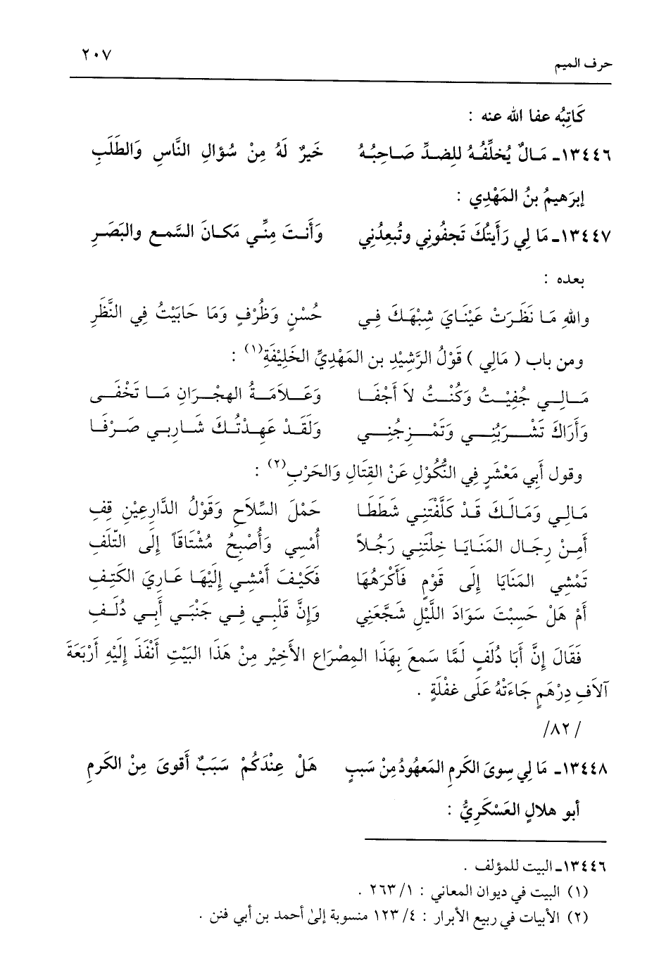 13448 - مَا لِي سِوَى الكَرم المَعهُودُ مِنْ سَببٍ ... هَلْ عِنْدَكُمْ سَبَبٌ أَقوىَ مِنْ الكَرمِ