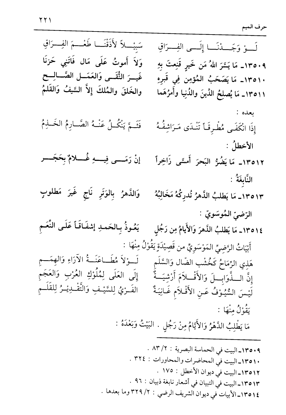 13514 - الأبيات في ديوان الشريف الرضي: 2/ 329 وما بعدها.