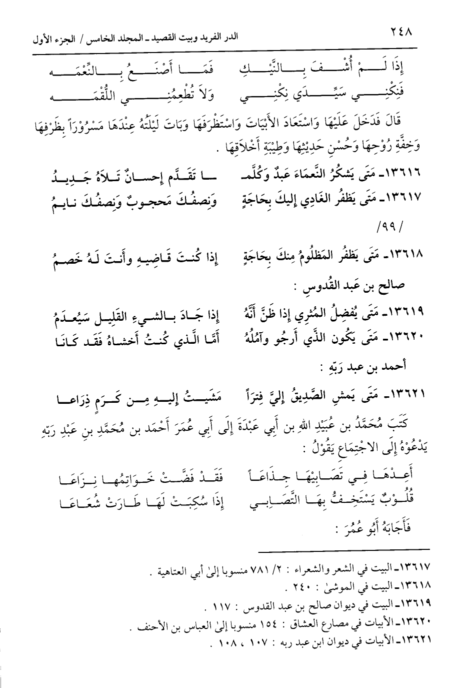 كَتَبَ مُحَمَّدُ بن عُبَيْدِ اللَّهِ بن أَبِي عَبْدَةَ إِلَى أَبِي عُمَرَ أَحْمَد بن مُحَمَّدِ بنِ عَبْدِ رَبّهِ يَدْعُوْهُ إِلَى الاجْتِمَاعِ يَقُوْلُ: