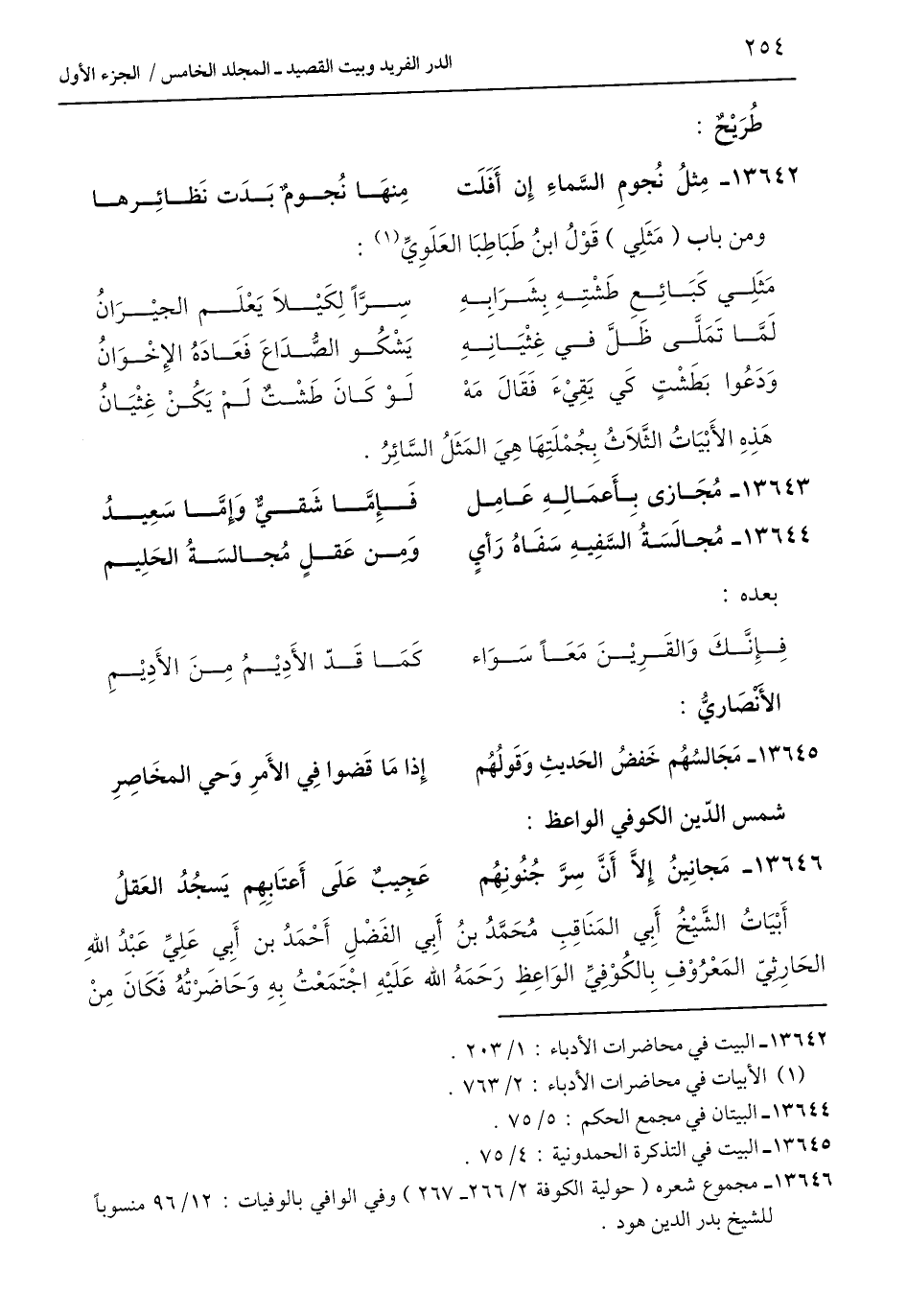 13646 - مجموع شعره (حولية الكوفة 2/ 266 - 267) وفي الوافي بالوفيات: 12/ 96 منسوبًا للشيخ بدر الدين هود.