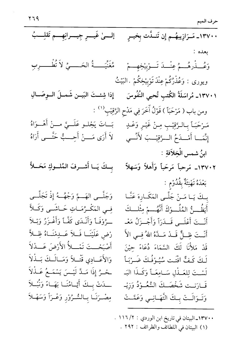 13700 - البيتان في تاريخ ابن الوردي: 2/ 116.
