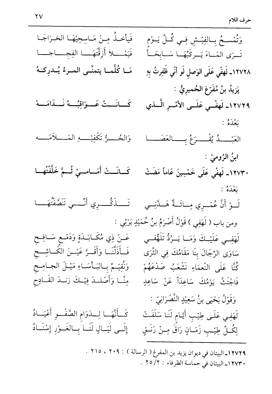 ومن باب (لَهفِي) قَوْلُ أَصْرَمُ بنُ حُمَيْدٍ يَرْثِي: